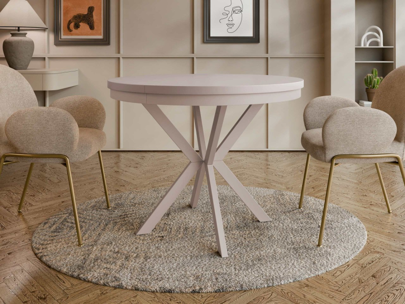 Rozkládací stůl Azglo Kaszmir 120 dokonale doplní charakter vaší jídelny nebo obývacího pokoje. Kulatá deska stolu, dostupná v několika barevných variantách, vám umožní snadno ji sladit s různými styly interiéru. Stůl je dlouhý 120 cm a v rozloženém stavu dosahuje délky 196 cm, takže je ideální jak pro každodenní stolování, tak pro větší setkání s rodinou a přáteli. Kašmírová základna dodává celému stolu decentní, elegantní vzhled a vyniká svým zajímavým geometrickým tvarem. Tento kus stolu kombinuje funkčnost s výjimečným designem a vytváří stylový ústřední bod v každém prostoru.