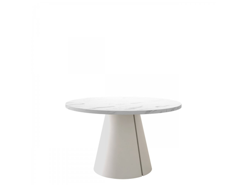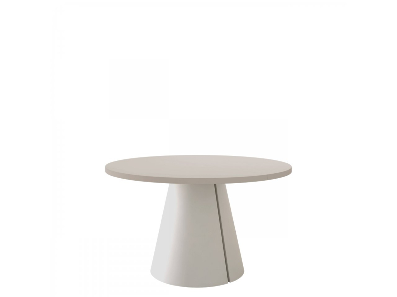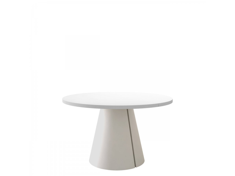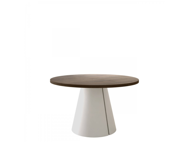 Moderní rozkládací stůl Lasire Kashmir 100 cm je vkusnou dekorací do vašeho obývacího pokoje, pracovny nebo elegantní jídelny. Kulatá deska stolu je umístěna na módní podnoži ve tvaru seříznutého kužele, což dodává stolu dekorativní charakter.