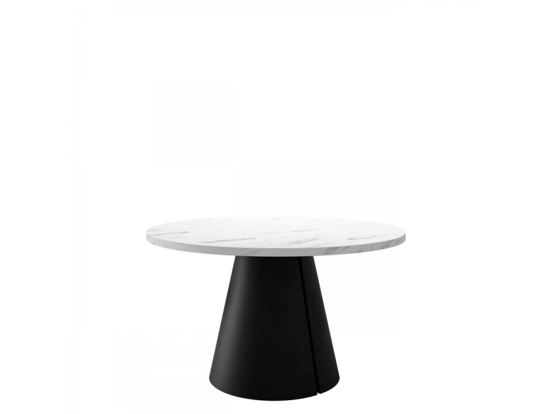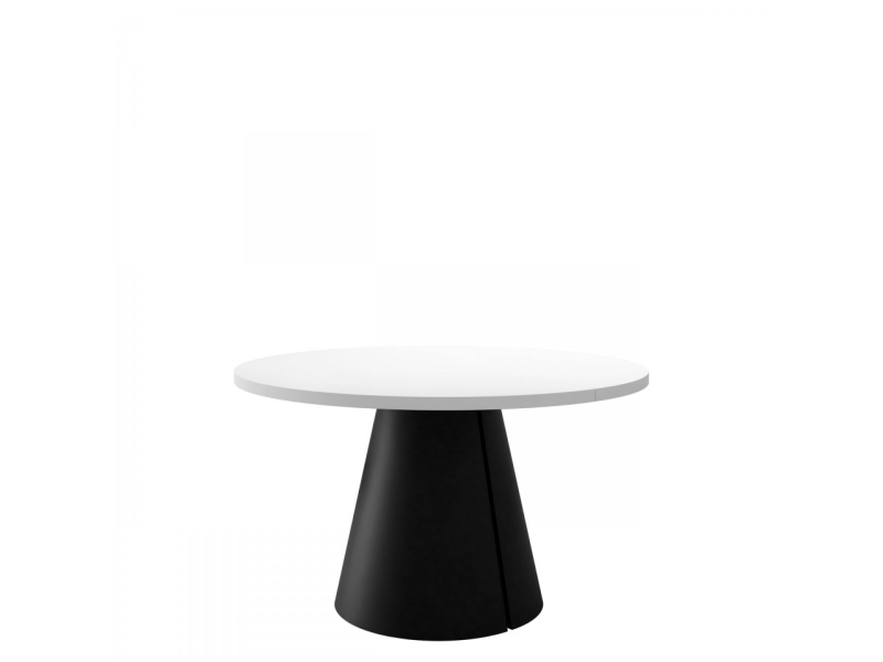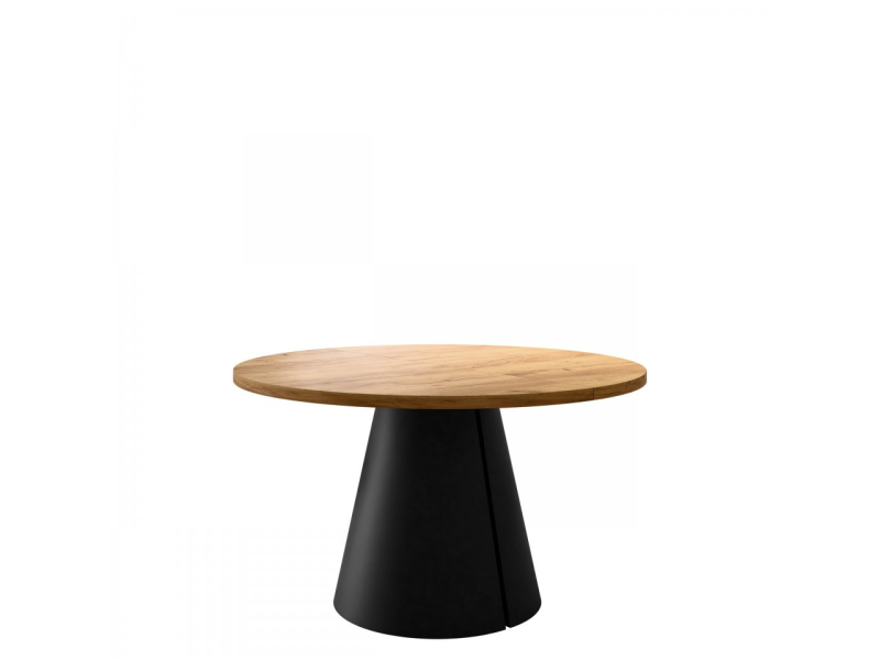 Moderní rozkládací stůl Lasire 120 cm je dokonalou kombinací jemné elegance a výrazného designu. Kulatá deska stolu dodává interiéru harmonii a lehkost, zatímco dekorativní podnož ve tvaru seříznutého kužele dělá z tohoto kusu nábytku skutečnou ozdobu vašeho obývacího pokoje, jídelny nebo stylové restaurace. Je to stůl, který udává náladu interiéru a zdůrazňuje jeho charakter už na první pohled.
