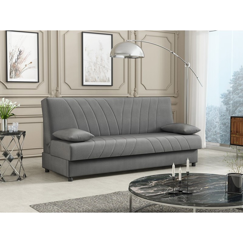 Pohovka State do obývacího pokoje nepochybně zaujme svojí kombinací minimalismu a elegantního tvaru s nádechem elegance. Dekorativní prošívání na sedadle i opěradle ještě více umocňuje celkový design. Dostupné barvy a látky ještě více umocňují celkový vzhled. Kromě estetického vzhledu se pohovka může pochlubit také funkčními vlastnostmi. První je její funkce na spaní pro dvě osoby. V rozloženém stavu měří pohovka šířku 118 cm a délku 195 cm. Kromě toho má pohovka úložný prostor na ložní prádlo a látkou čalouněné opěradlo, což znamená, že může stát volně.
