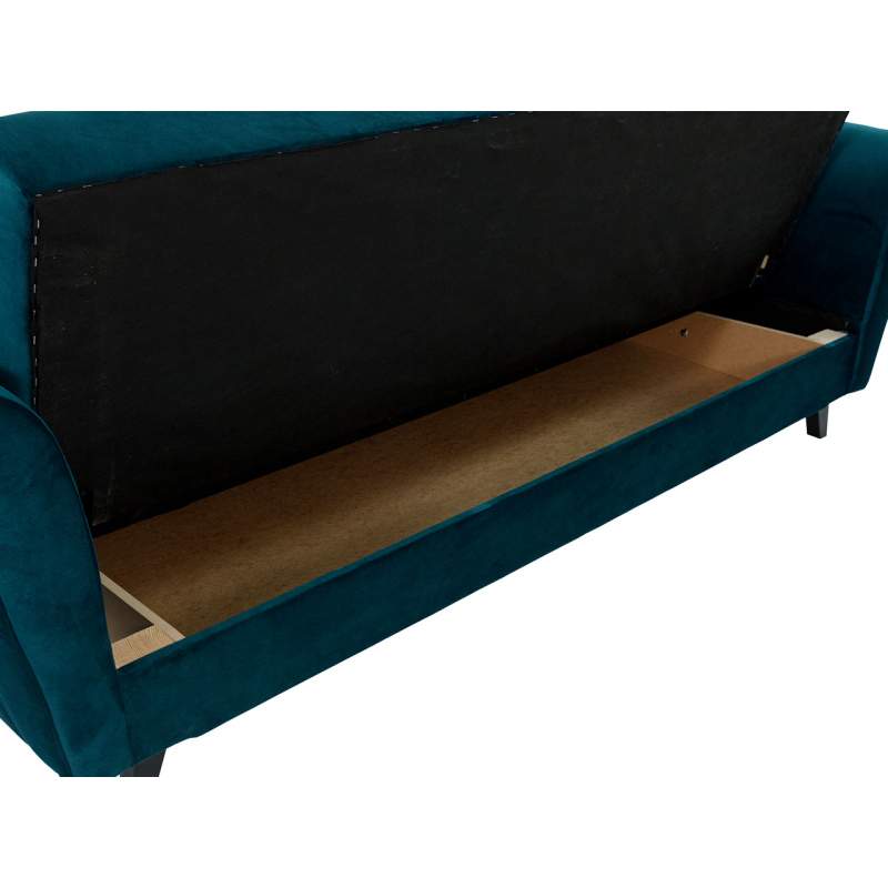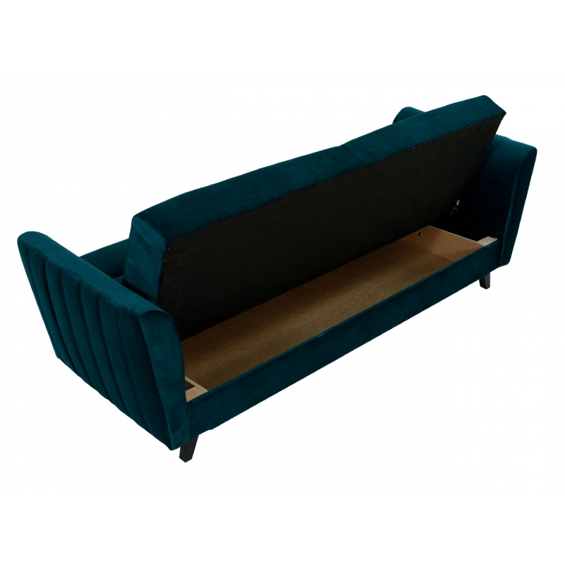 Mezi další výhody pohovky patří funkce na spaní a úložný prostor na lůžkoviny. Pohovka se snadno rozkládá díky použitým automatickým zařízením.