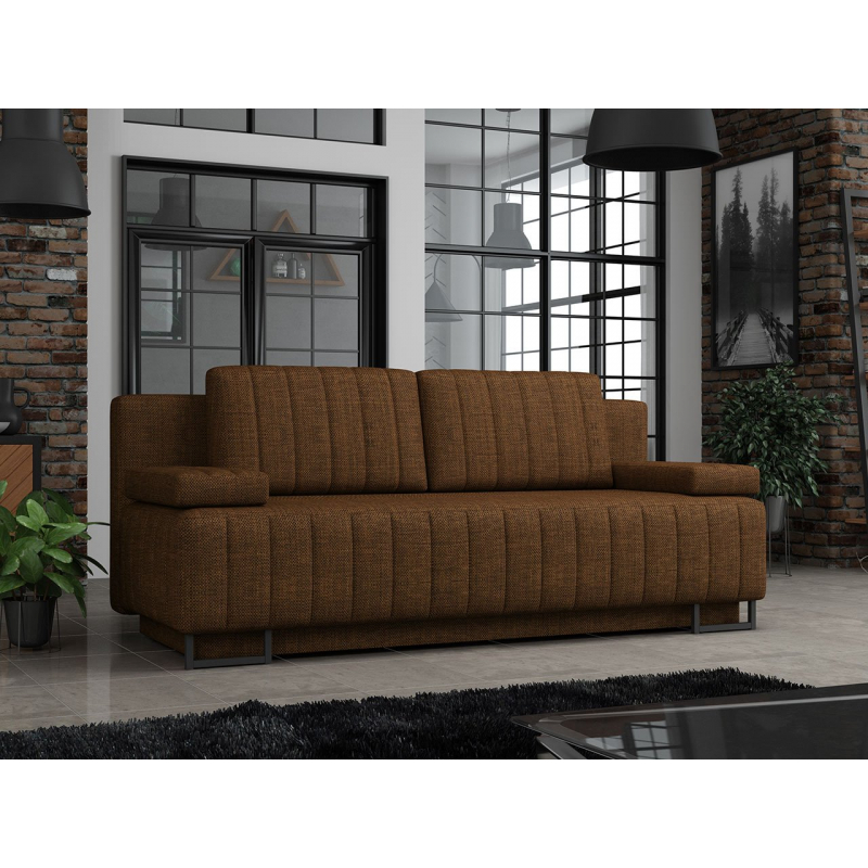 Pohodlná rozkládací pohovka Oraos je splněným snem o útulném relaxačním koutku ve vašem obývacím pokoji. Díky svému jednoduchému stylu a zajímavé barevné paletě je tato pohovka ideální také do studentského nebo teenagerského pokoje. Tento model poskytuje pohodlí jak při sezení, tak při spánku. Speciální mechanismus usnadňuje přípravu spacího prostoru; k rozložení nebo složení pohovky stačí jemný pohyb rukou. Uvnitř nábytku se nachází prostorný úložný prostor pro ložní prádlo, který řeší problém s ukládáním. Opěradlo ve formě pohyblivých polštářů lze přizpůsobit vašim aktuálním potřebám.