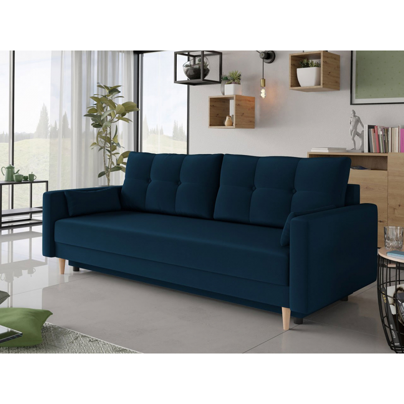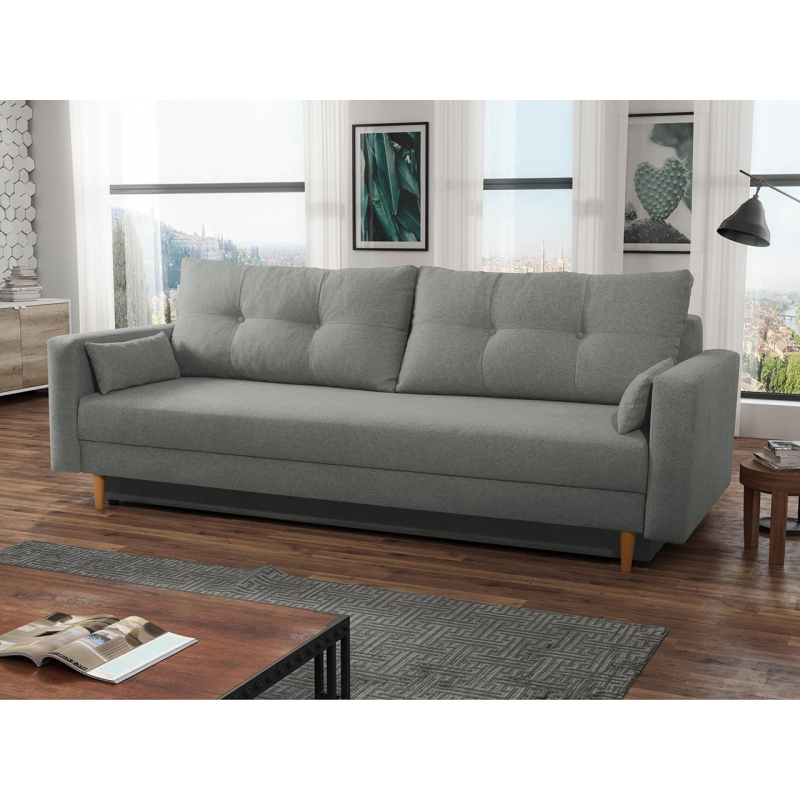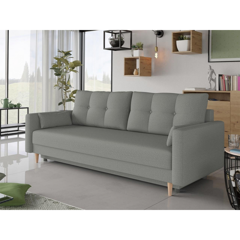 Rozkládací pohovka je nejčastější volbou v bytech, kde není mnoho místa a vytváří tak místo pro příležitostné nebo každodenní spaní členů domácnosti. Seweris je model pohovky, vybavený rozkládací funkcí, snadno a bez problémů se rozloží pomocí speciálních automatických komponentů. Během několika okamžiků přeměníte pohovku na pohodlnou postel pro minimálně dvě osoby. Sedačka Seweris je vybavena také velkým úložným prostorem, který se nachází těsně pod sedadlem a umožňuje vám uskladnit ložní prádlo nebo další předměty. Tento model dobře ladí s interiéry zařízenými ve skandinávském nebo moderním stylu. Charakteristickým znakem této pohovky jsou vysoké dřevěné přední nohy a prošívání viditelné na sedácích opěradla. Gauč je samostatně stojící.