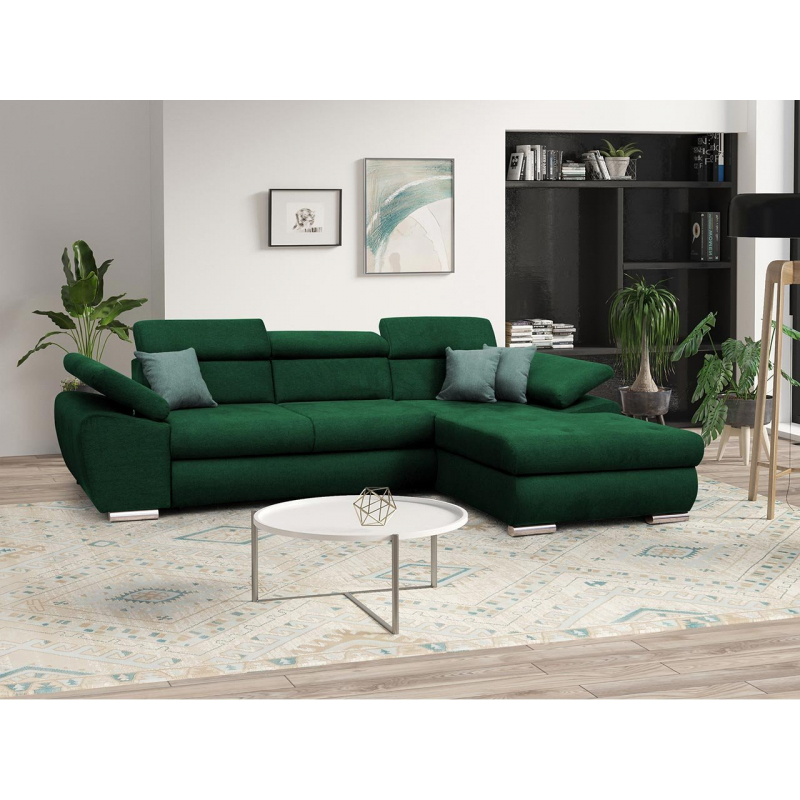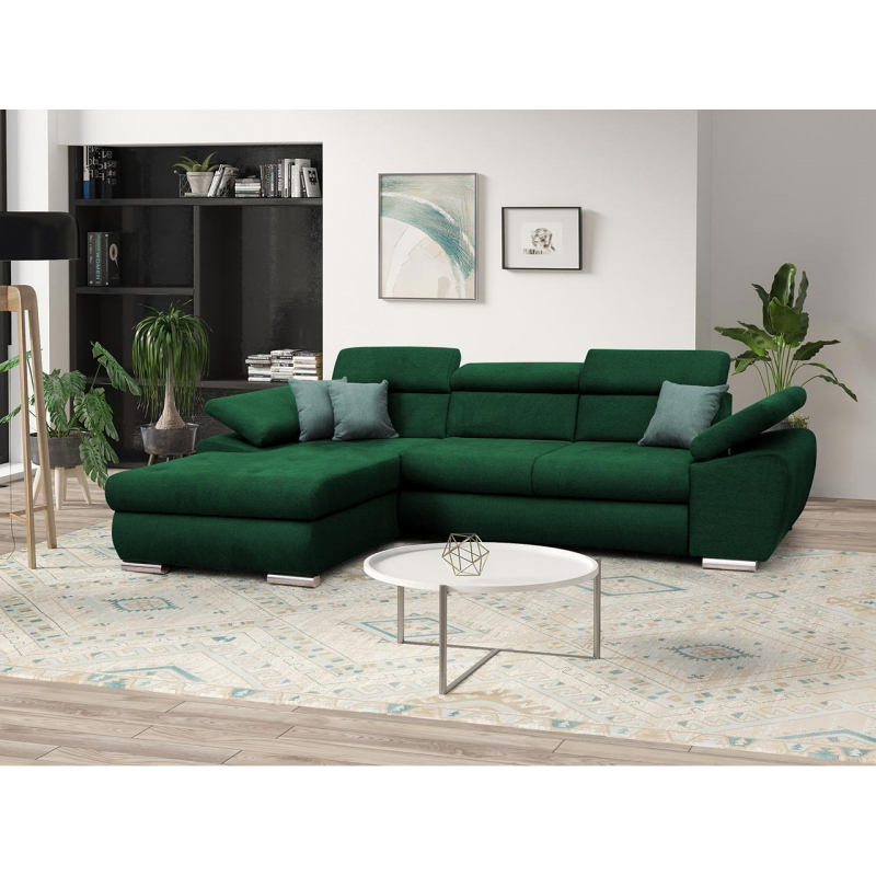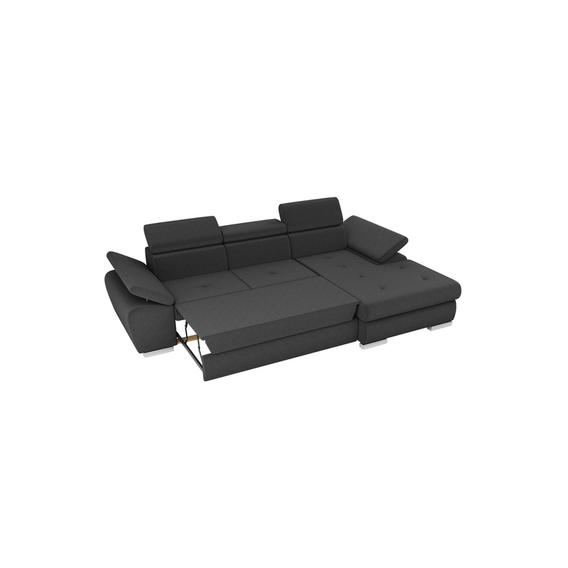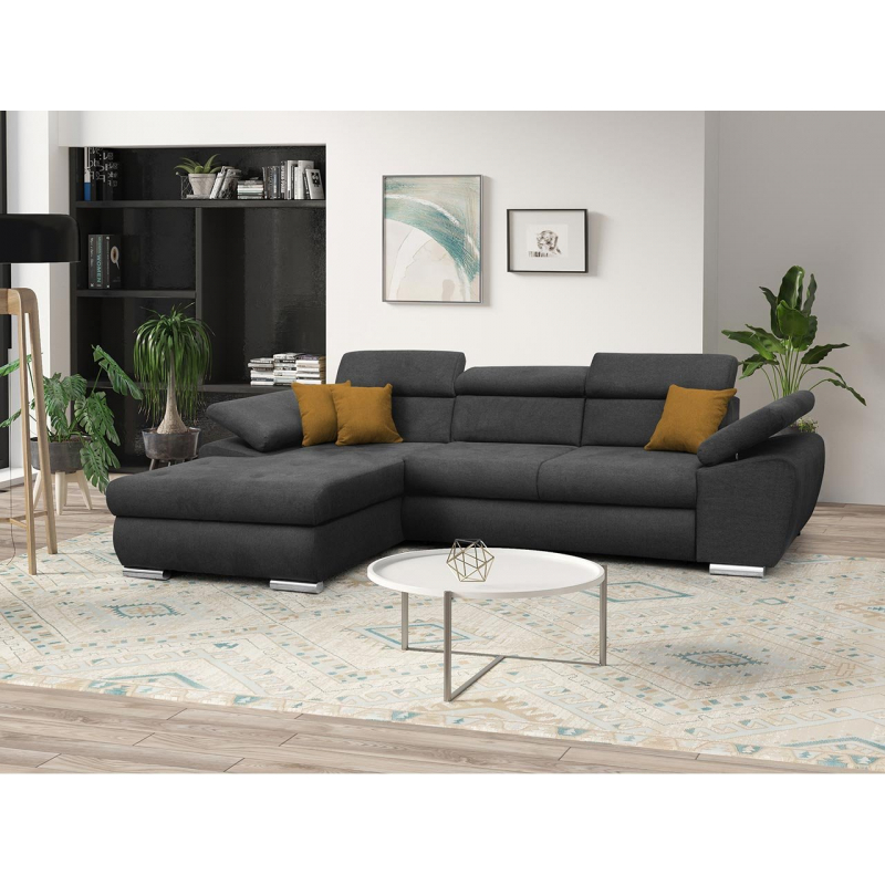 Rohová rozkládací pohovka Ragerin se hodí do moderního interiéru. Zadní strana pohovky je potažena látkou, takže může být kdekoli, nejen u zdi. Rozkládací pohovka může úspěšně nahradit postel. Ideální jako příležitostné místo k odpočinku nebo spaní každý den. Rohová rozkládací pohovka má další funkce. Má praktický úložný prostor na ložní prádlo, který je vhodný pro uložení polštářů, peřin a jiných předmětů. Nastavitelné opěrky hlavy a loketní opěrky vám umožní relaxovat tělo po náročném dni. Široká škála barev umožní pohovku dokonale sladit s interiérem. Celek byl vyroben z kvalitních prvků.