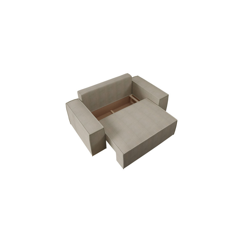 Jedním z nejzajímavějších aspektů této pohovky je úložný prostor na lůžkoviny. Můžete do něj uložit peřiny, polštáře a další potřeby na spaní, a přitom udržet v místnosti čistotu. Kromě funkčnosti tento model zaujme také svým vzhledem. Jeho opěradlo bylo čalouněno látkou, což z něj činí ideální volně stojící kus nábytku, který může ozdobit prostor v každé místnosti. Opěradlo pohovky tvoří pohyblivé polštáře na zip.