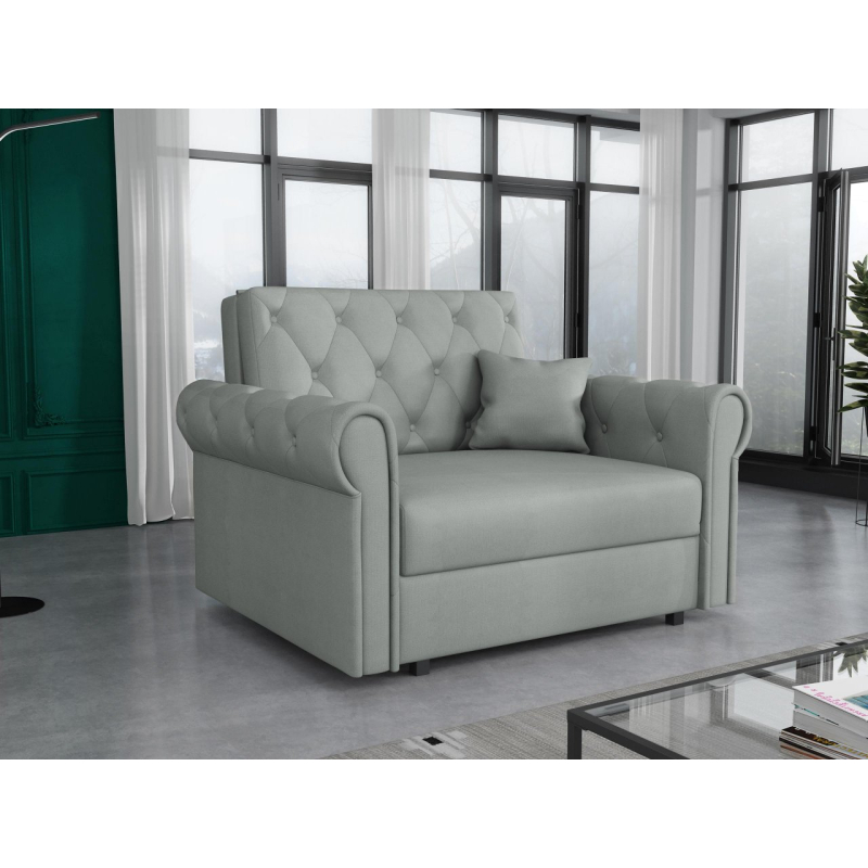 Kromě podmanivého vzhledu má tento model řadu praktických funkcí. Jedná se o polohovací variantu s automatickým americkým typem. Díky tomu se vaše sedací souprava během okamžiku promění v pohodlnou spací plochu. Kromě toho poskytuje také podstavec pro úložný prostor. Do přihrádky na lůžkoviny můžete umístit všechny potřebné předměty a zajistit tak, aby vaše okolí bylo vždy uklizené. Pohovka je volně stojícího typu, který jistě zapadne do každého designu. Kromě toho je vybavena také polštářem a subtilními kovovými nožičkami.