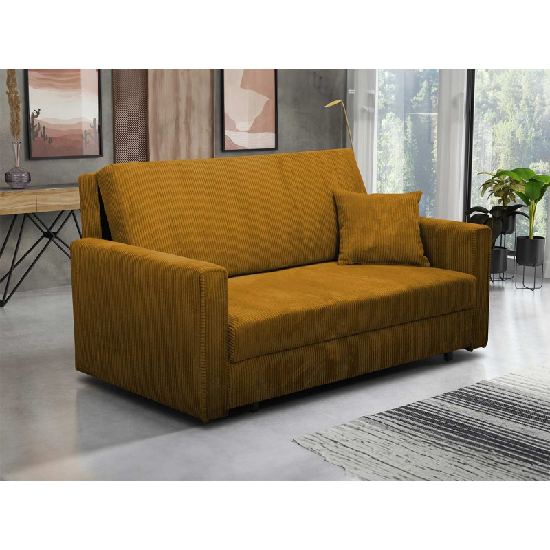 Další výhodou pohovky je manšestrové čalounění. Vnáší do místnosti, jejíž je součástí, útulnost a teplo.