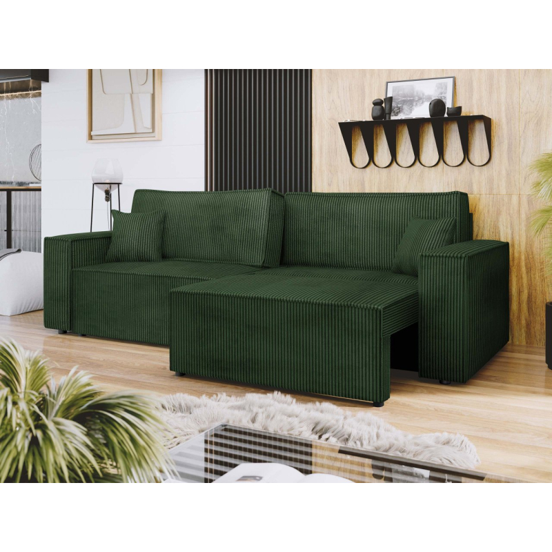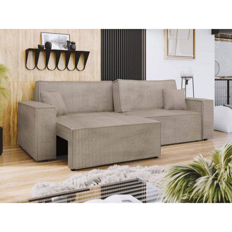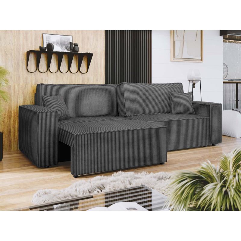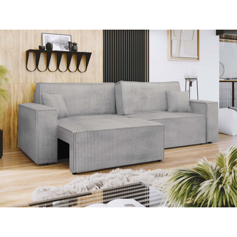 Poznejte model, který vás překvapí svojí funkčností. Rohová pohovka Kasjusz Sztruks s funkcí spánku je zajímavou kombinací dvou oblíbených modelů salonků. Tento skládací typ nabízí dvě možnosti. Prvním je přeměna pohovky na rohovou a druhým vytvoření místa na spaní.