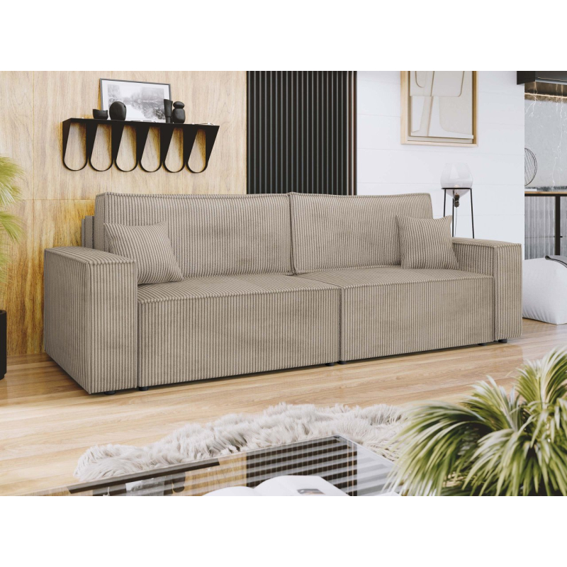 Rohová sedačka s kontejnerem na ložní prádlo je skvělým doplňkem do každého prostoru. Skvěle se hodí zejména do menších interiérů, kde se počítá každý cm plochy. Praktická úložná základna v podobě dvou přihrádek a opěradlo v podobě pohyblivých polštářů jsou další vymoženosti. Prezentovaná varianta je volně stojící typ zabalený do atmosférické pruhované látky.