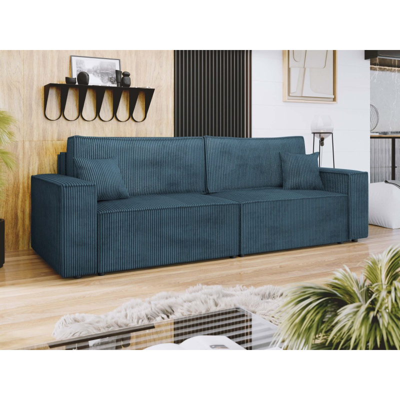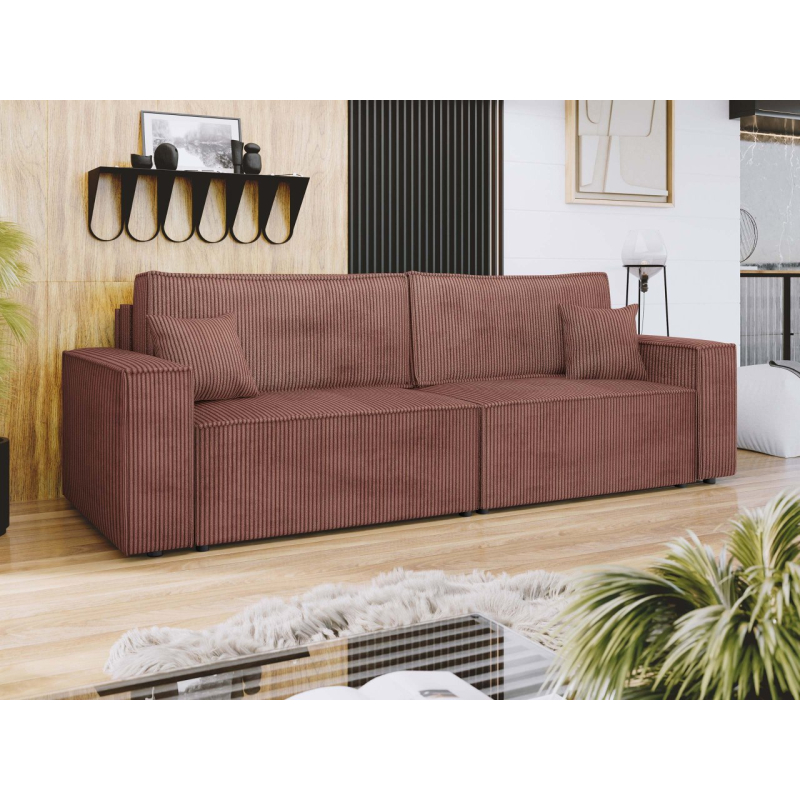 Konstrukce pohovky obsahuje dva kontejnery na ložní prádlo, pohodlný sedák a opěradlo s pohyblivými polštáři. Bude vypadat perfektně iv malém obývacím pokoji.