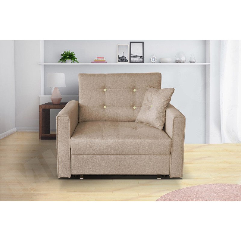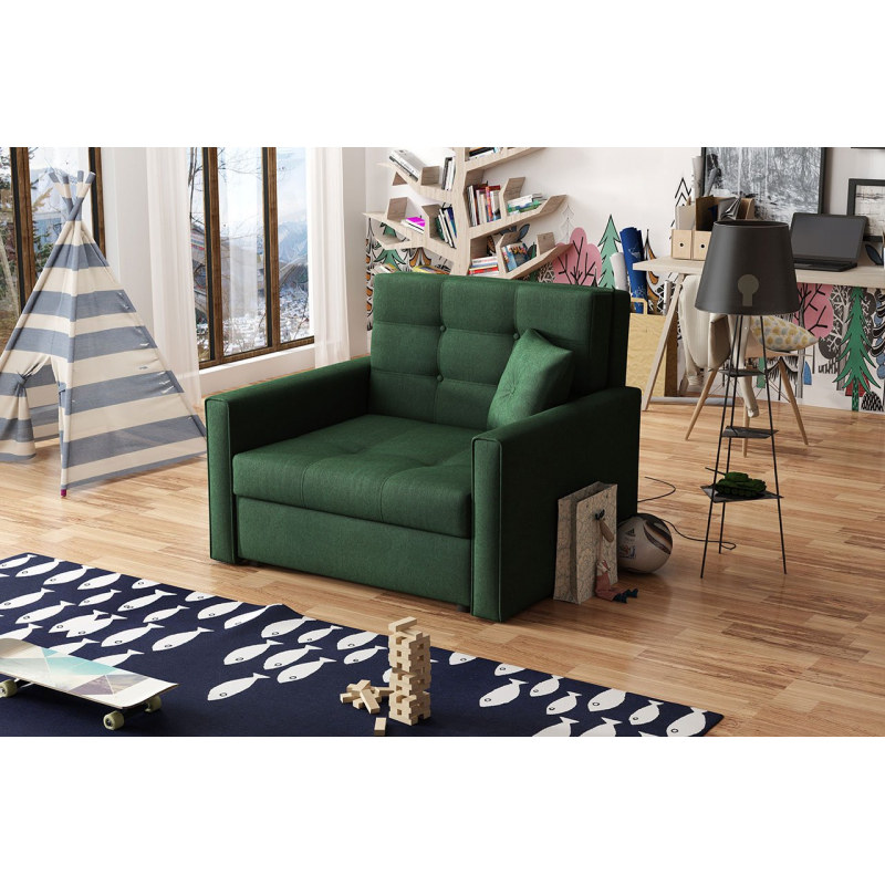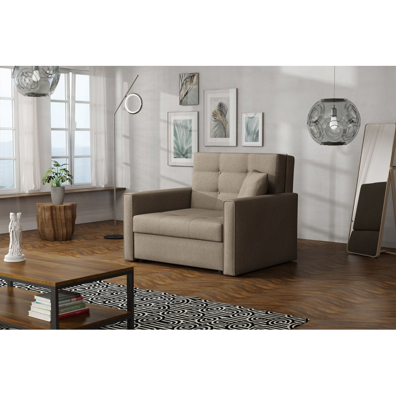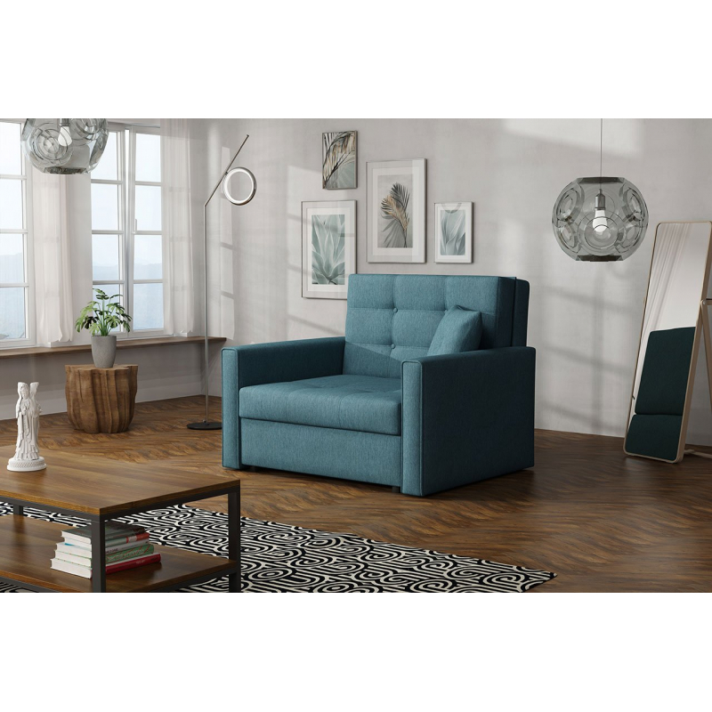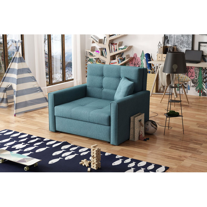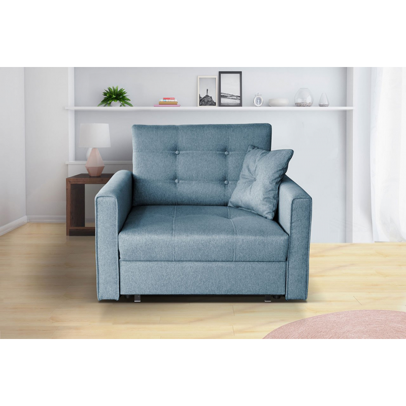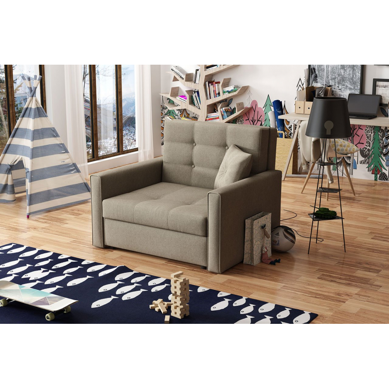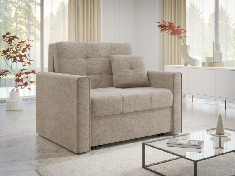Rozkládací křeslo Clivia Lux I je volně stojící model - je celé potaženo látkou, díky čemuž lze v místnosti snadno umístit.