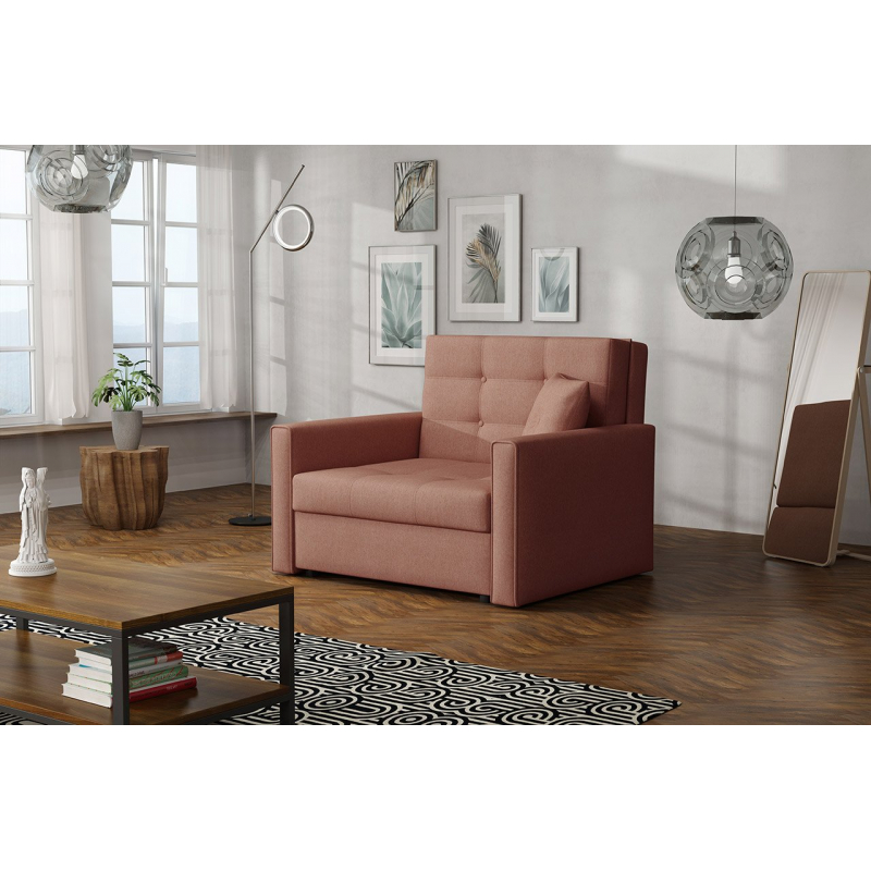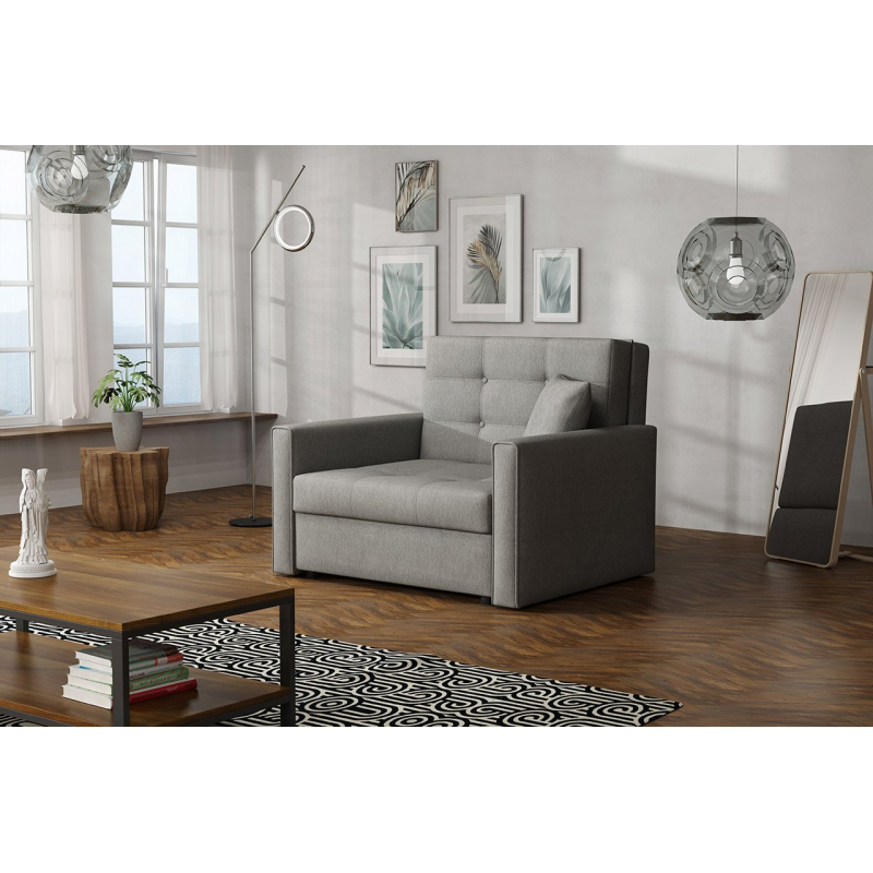 Navzdory své malé velikosti má mnoho funkcí. Je vybavena prostorným úložným prostorem pro lůžkoviny a pohodlnou funkcí spaní pro jednu osobu.