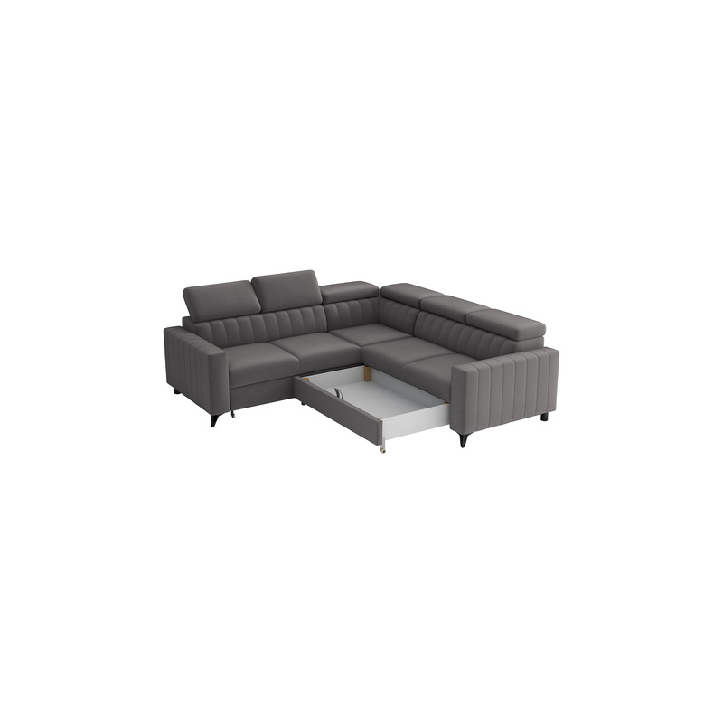 Rohová sedačka do obývacího pokoje Levioseno 2R2 je zajímavým spojením stylu a mimořádného pohodlí v jednom kuse nábytku. Tento model vás nadchne moderním designem a měkkým čalouněním. Rozkládací rohová sedačka navíc nabízí řešení, díky kterým bude váš interiér ještě útulnější a funkčnější.