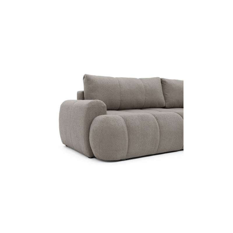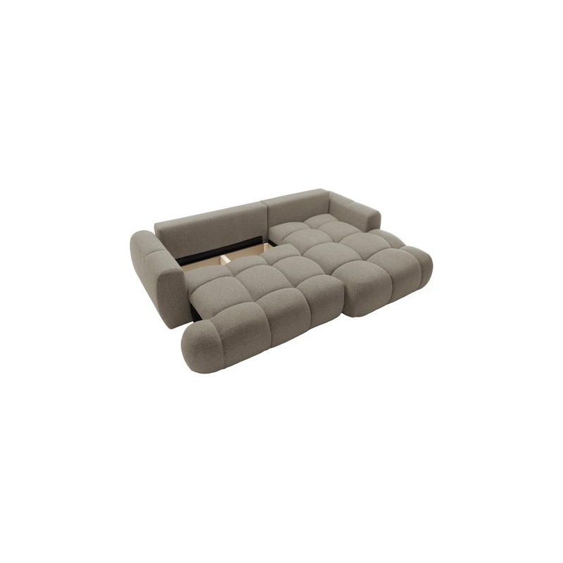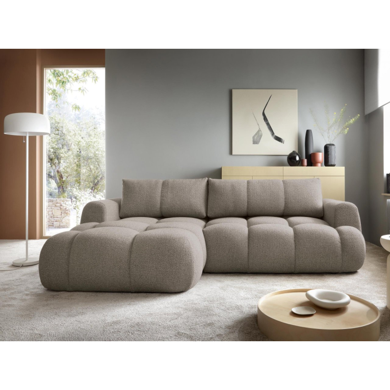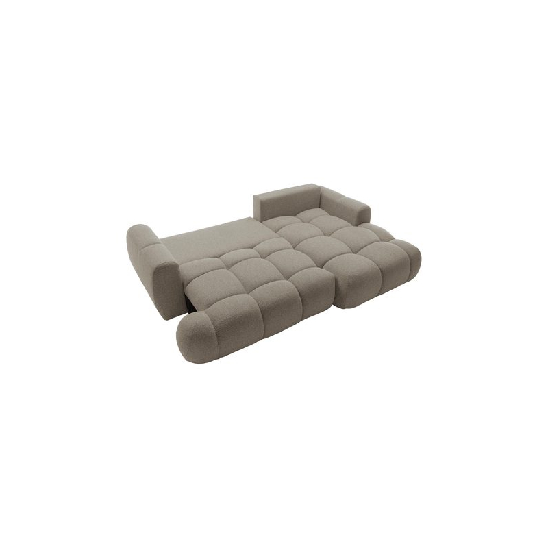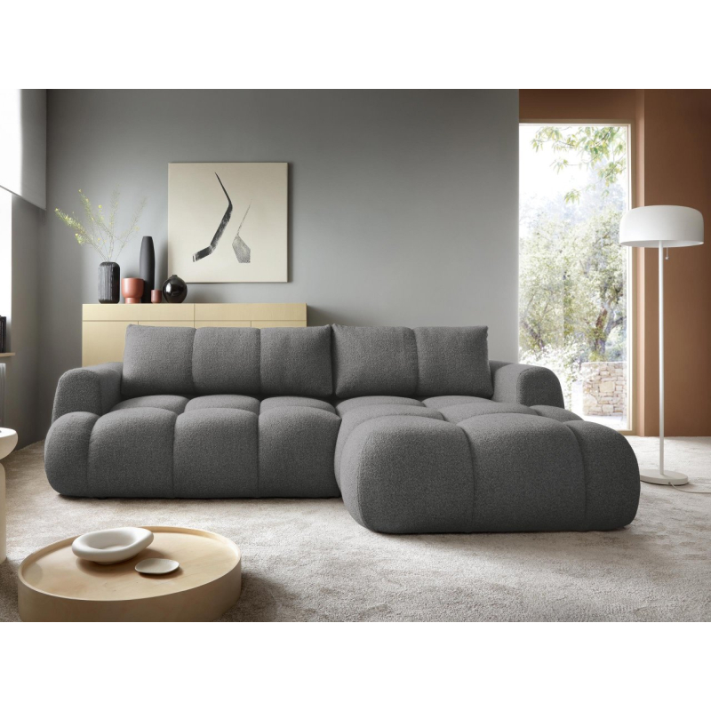 Rohová rozkládací pohovka Zerlita vás zahalí do příjemné měkkosti a poskytne pohodlný prostor při rodinných setkáních a nočním odpočinku. Tlumené barvy v různých odstínech se budou skvěle hodit v mnoha stylových aranžmá. Pozoruhodná je zaoblená struktura, která dodává nábytku lehkost a útulnost.