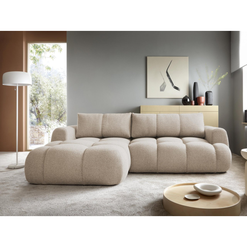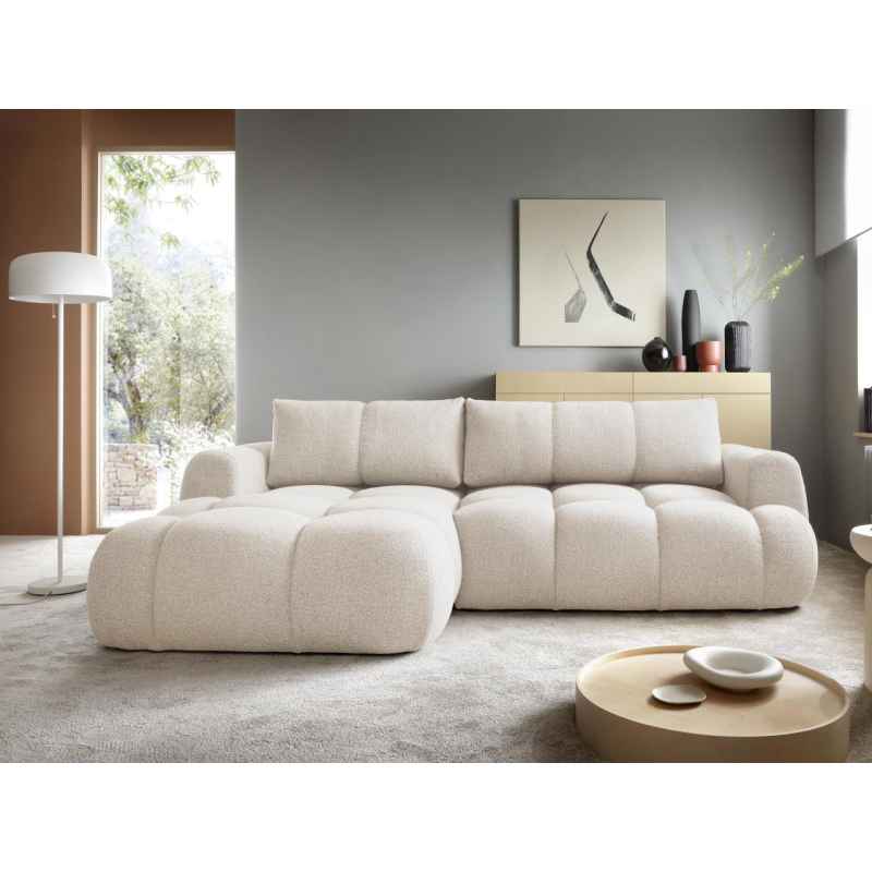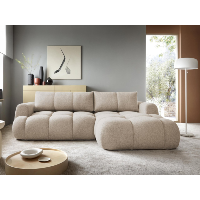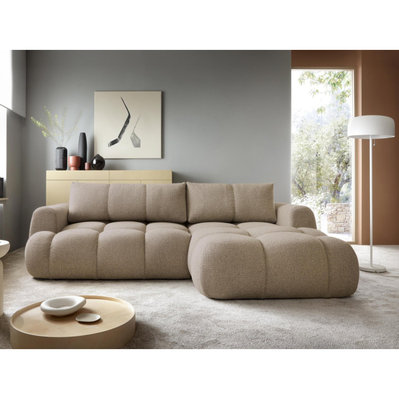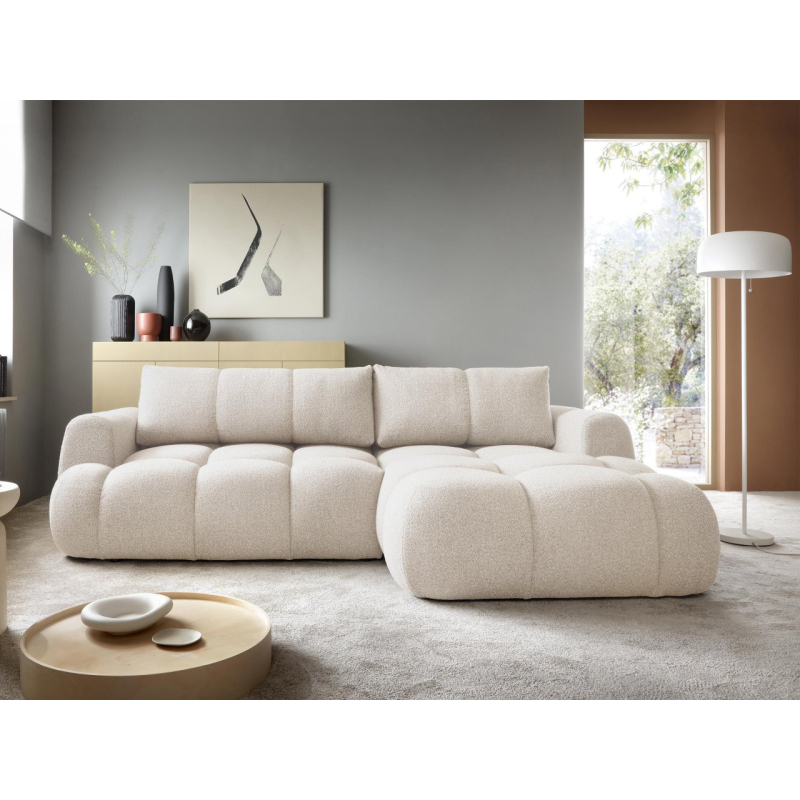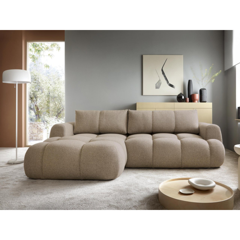 Rohová rozkládací pohovka Zerlita vás zahalí do příjemné měkkosti a poskytne pohodlný prostor při rodinných setkáních a nočním odpočinku. Tlumené barvy v různých odstínech se budou skvěle hodit v mnoha stylových aranžmá. Pozoruhodná je zaoblená struktura, která dodává nábytku lehkost a útulnost.