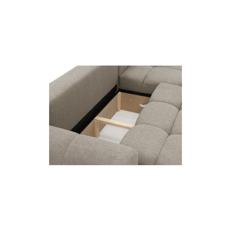 Rohová pohovka Zerlita s úložným prostorem na ložní prádlo je každodenní funkcionalitou a výborným základem pro uložení peřin, polštářů nebo přikrývek. Model snadno přeměníte na pohodlnou postel díky automatickému mechanismu typu DL. Tato samostatně stojící rohová pohovka má také opěradlo v podobě pohyblivých polštářů, které se zapínají na zip.