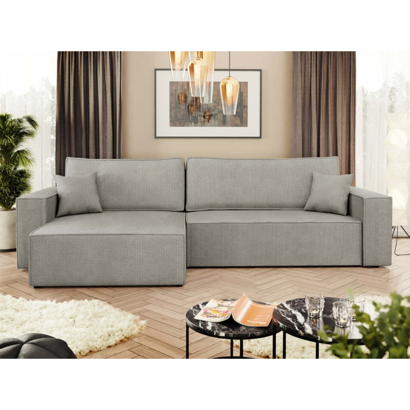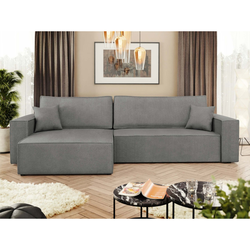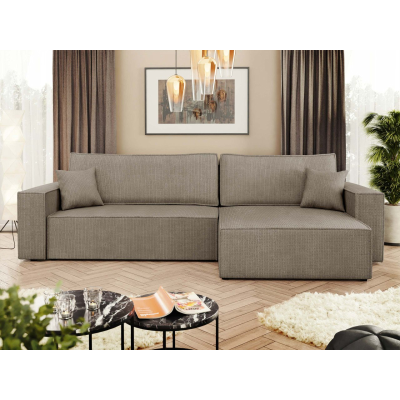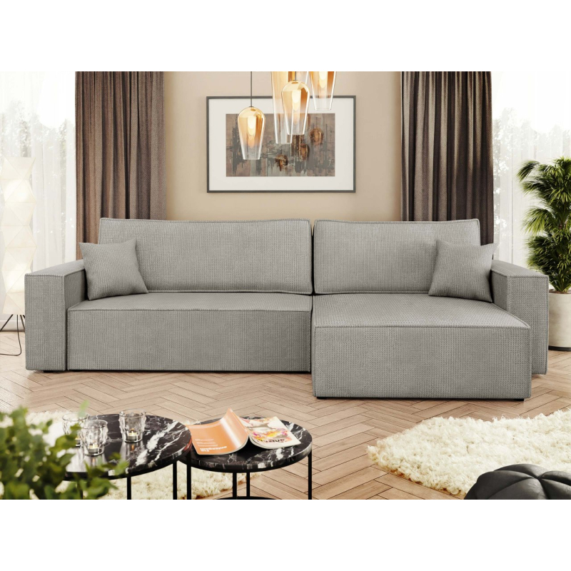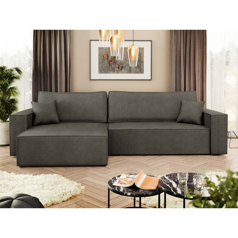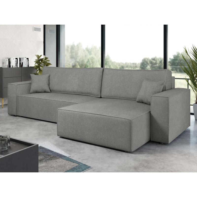 Moderní rohová sedačka z manšestrové látky Kasjusz Maxi v sobě spojuje stylový vzhled a funkčnost. Designový charakter nábytku zvýrazňuje především módní látka. Jemný a příjemný na dotek, rýhovaný samet je hitem – je mimořádně oblíbený mezi lidmi, kteří si vybírají čalouněný nábytek. V modelu Kasjusz Maxi je doplněna o ozdobným lemováním, které zvýrazňuje charakteristický tvar těla.