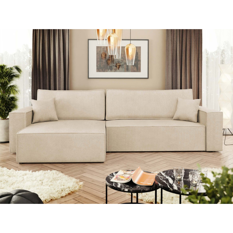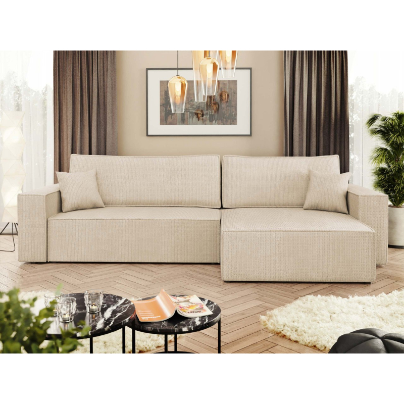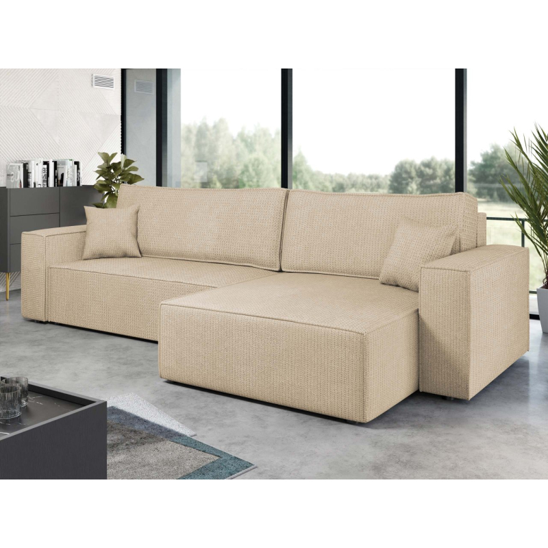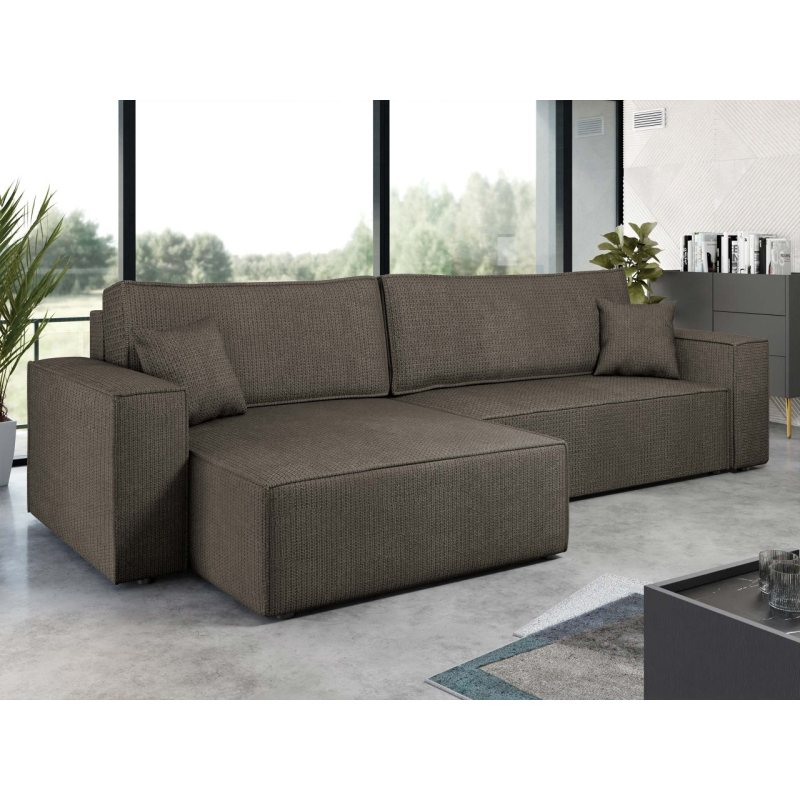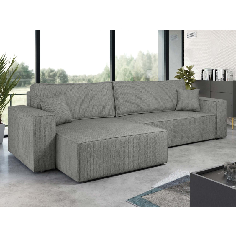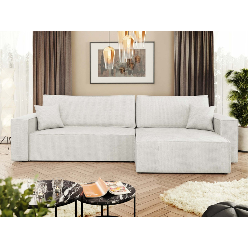 Moderní rohová sedačka z manšestrové látky Kasjusz Maxi v sobě spojuje stylový vzhled a funkčnost. Designový charakter nábytku zvýrazňuje především módní látka. Jemný a příjemný na dotek, rýhovaný samet je hitem – je mimořádně oblíbený mezi lidmi, kteří si vybírají čalouněný nábytek. V modelu Kasjusz Maxi je doplněna o ozdobným lemováním, které zvýrazňuje charakteristický tvar těla.