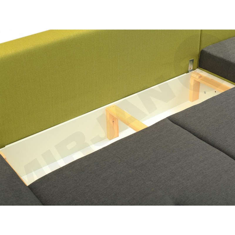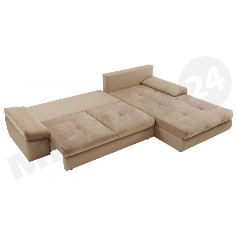 Rozkladací rohová pohovka Nobon je vyrobena z vysoce kvalitních komponentů, má jemné prošívání na sedadle a profilové područky. Roh má tři polštáře, které fungují jako opěradlo a spací funkce. Rohový hrudník nemohl postrádat nádobu na ložní prádlo a zadní část nábytku byla potažena látkou, což usnadní její uspořádání v místnosti.