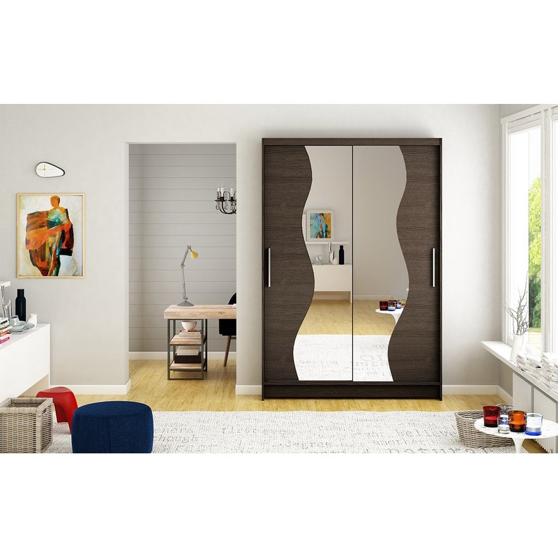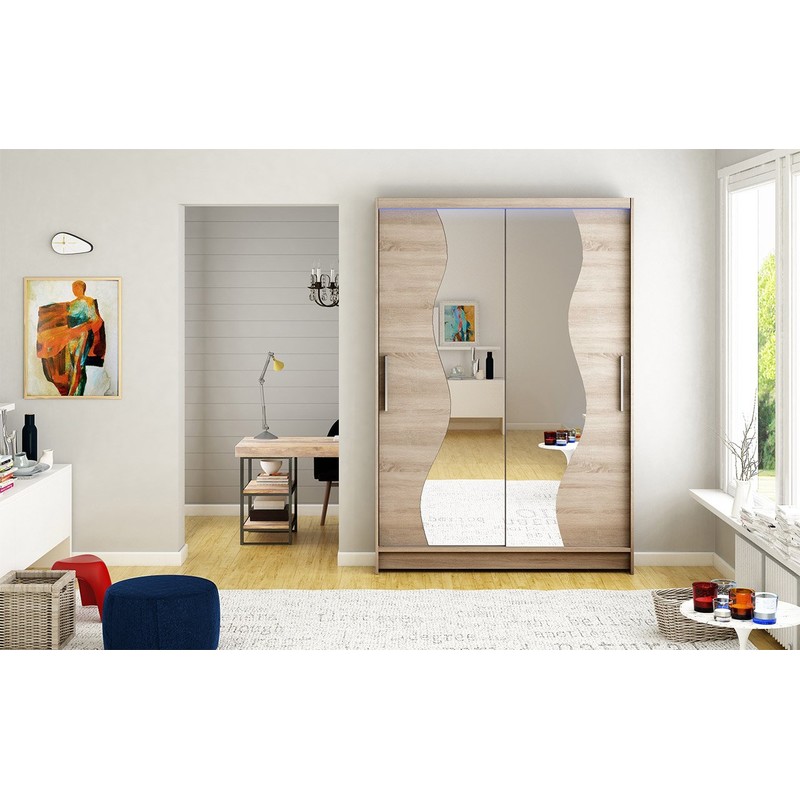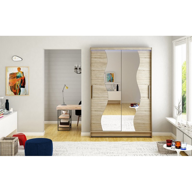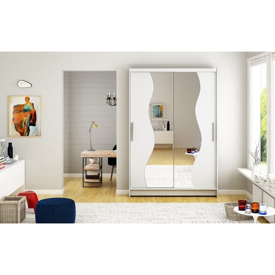 Ada S je moderní šatní skříň se zrcadlem na obou předních dveřích. Jednoduchý tvar a efektní barvy jsou v kontrastu se zvlněným tvarem zrcadla, což zároveň podporuje příznivou dynamiku zařízení interiéru.