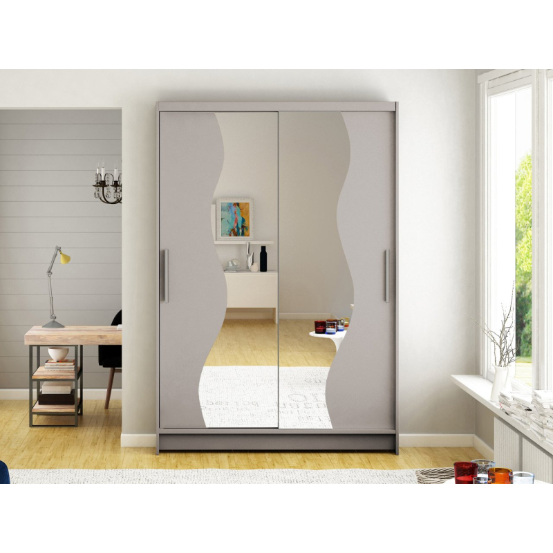 Ada S je moderní šatní skříň se zrcadlem na obou předních dveřích. Jednoduchý tvar a efektní barvy jsou v kontrastu se zvlněným tvarem zrcadla, což zároveň podporuje příznivou dynamiku zařízení interiéru.