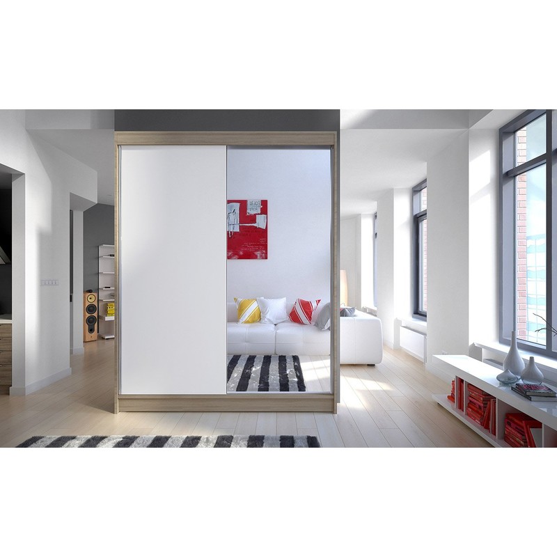Hledáte malý šatník ložnice nebo obývacího pokoje? Zvažte nákup skříně Belgie I. Šatní skříň je vyrobena z vysoce kvalitních součástí, které zaručují její stabilitu a pevnost. Interiér skříně je rozdělen do praktických zón. První zahrnuje řadu prostorných polic a druhá poskytuje tyč pro ramínka.