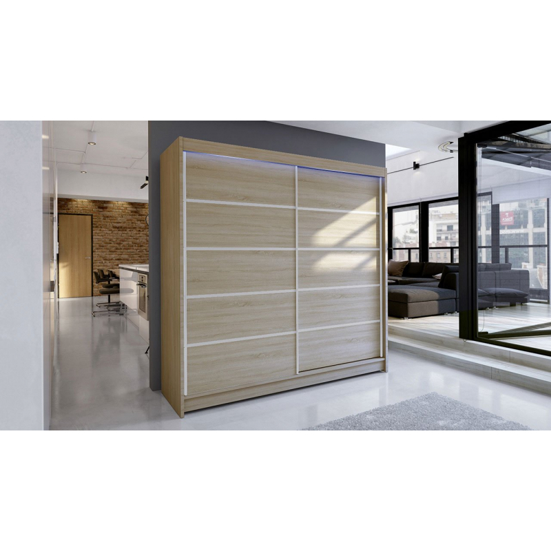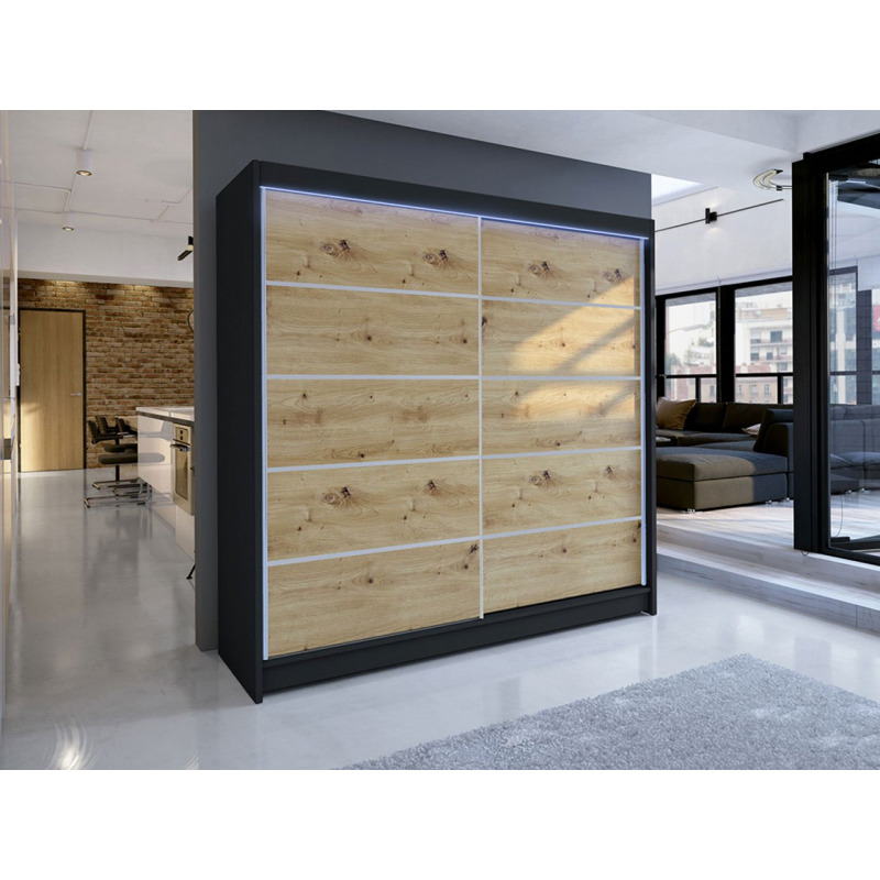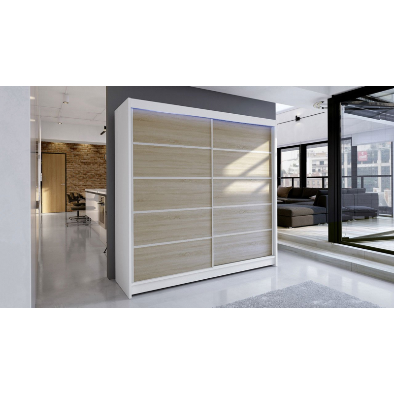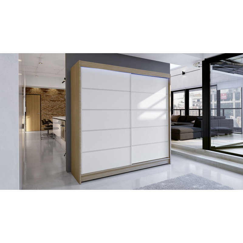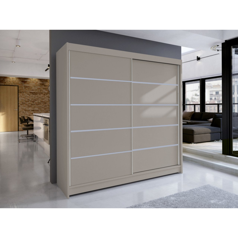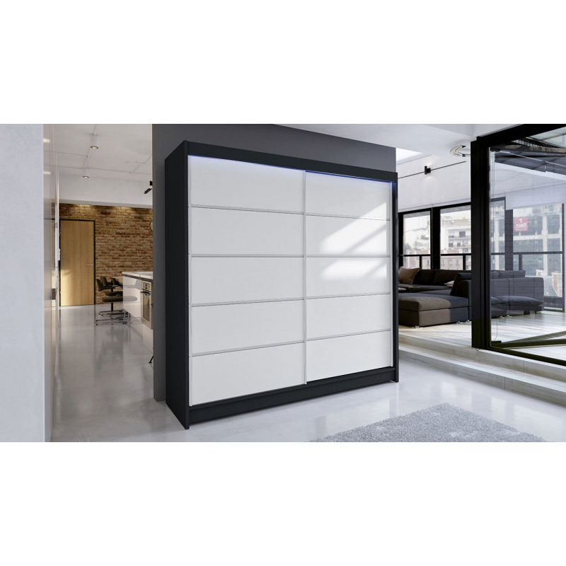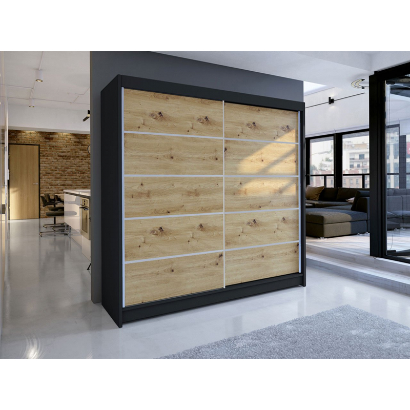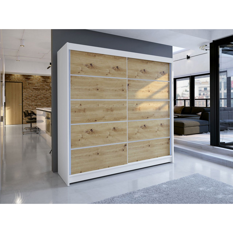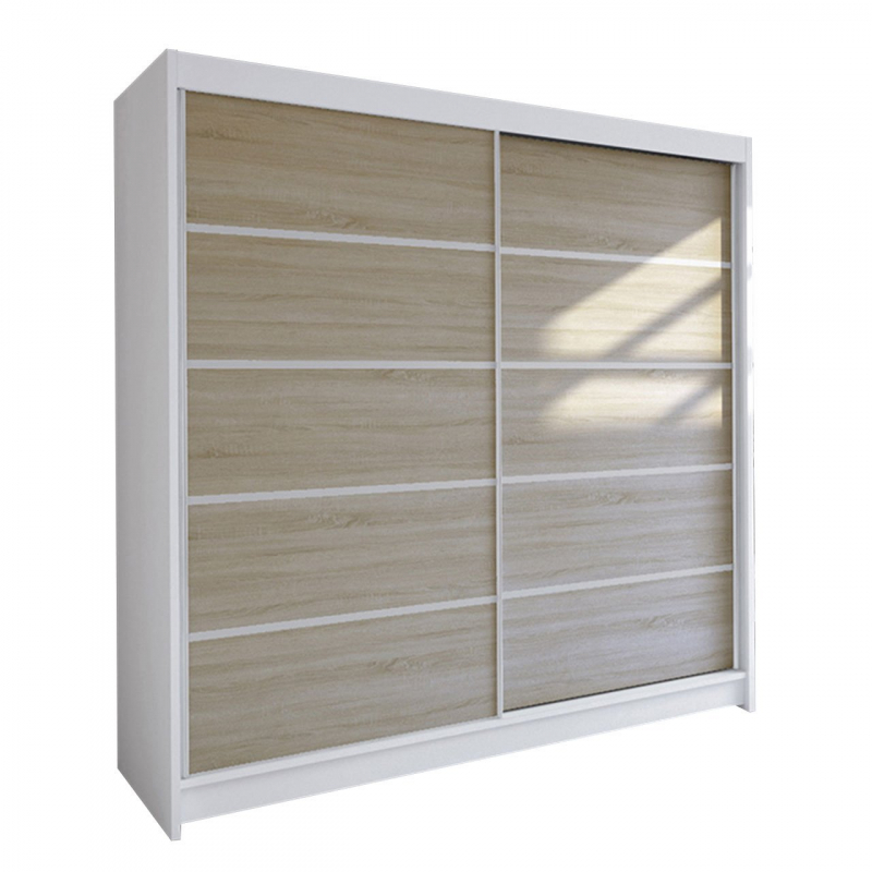Velká posuvná skříň Bar IV je dobře uspořádaný úložný prostor. Na police uvnitř můžete snadno umístit složené oblečení, jakož i doplňky, jako jsou tašky, klobouky a šátky. Své oblíbené oblečení budete chránit před nadměrným zmačkáním tak, že je umístíte do části, kde se na ramínkách zavěsí šaty. Na druhé straně, horní police jsou skvělým místem pro zřídka používané věci, kufry nebo náhradní přikrývky.