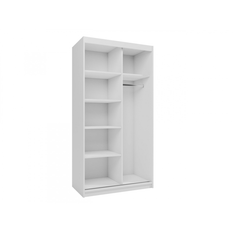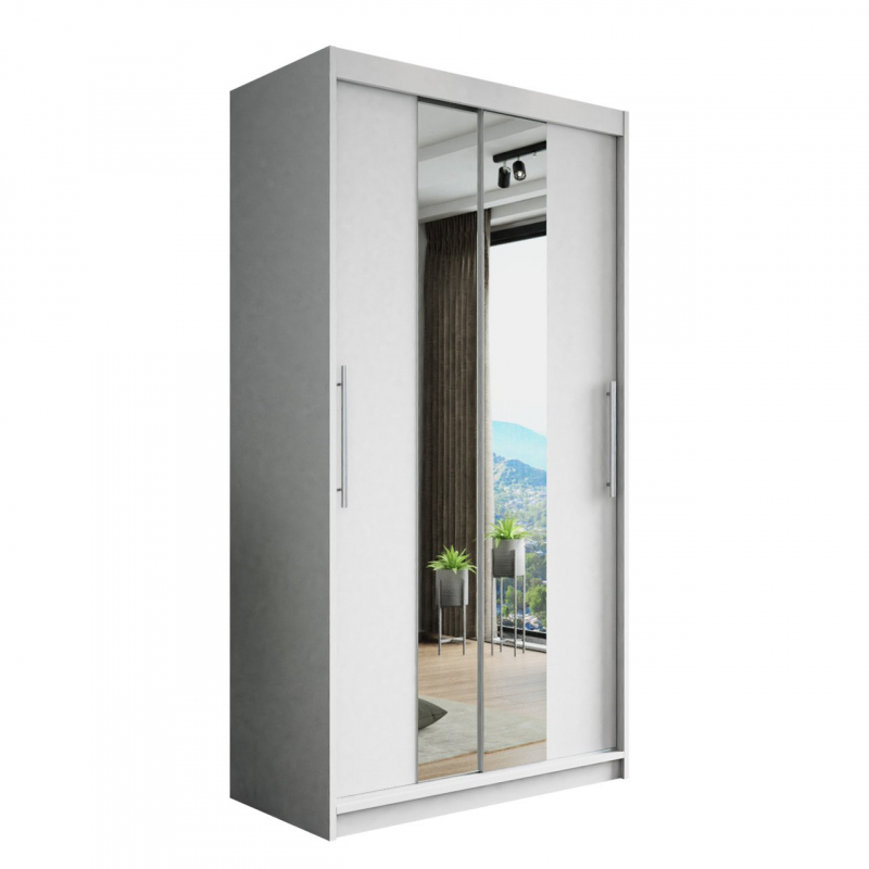 Navzdory malým rozměrům je tato skříň vybavena posuvnými dveřmi, které ušetří další prostor, a zrcadly vpředu, které opticky zvětší místnost.