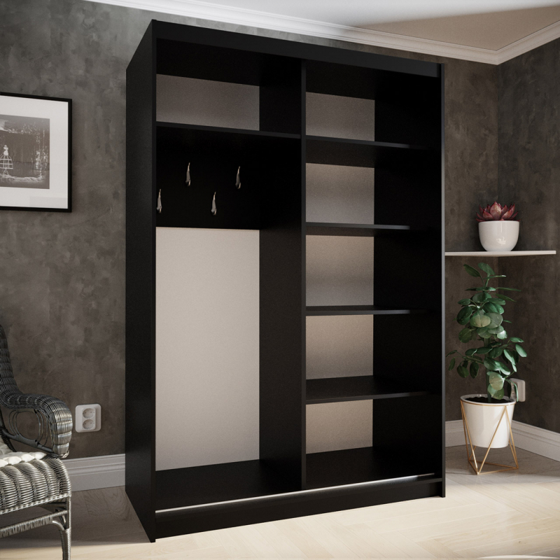 Tento kus nábytku je široký 130 cm a hluboký 45 cm, takže si jej můžete snadno uspořádat ve svém interiéru. Saloma 130 je vybavena množstvím hlubokých polic a háčků, které vám umožní pečlivě uspořádat šatník i posuvnými dveřmi, které dobře fungují v úzkých a malých místnostech. Šatní skříň je vyrobena z odolných materiálů, které zaručují dlouhodobou spokojenost při používání.