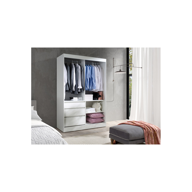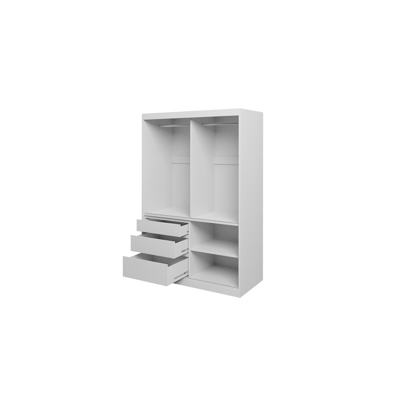Vnitřní prostor má police i zásuvky na plnovýsuvných kuličkových pojezdech a tyč na šaty. Díky tomu bude organizace mnohem snazší. Objemná posuvná šatní skříň se postará o to, abyste si oblečení roztřídili podle svých potřeb.