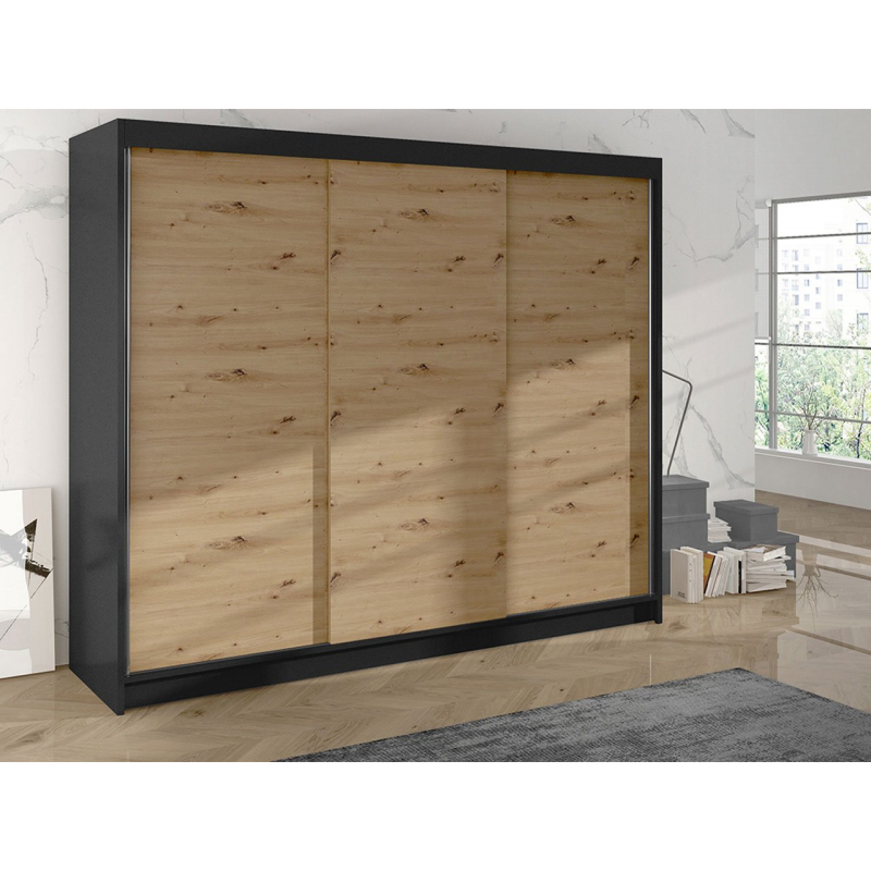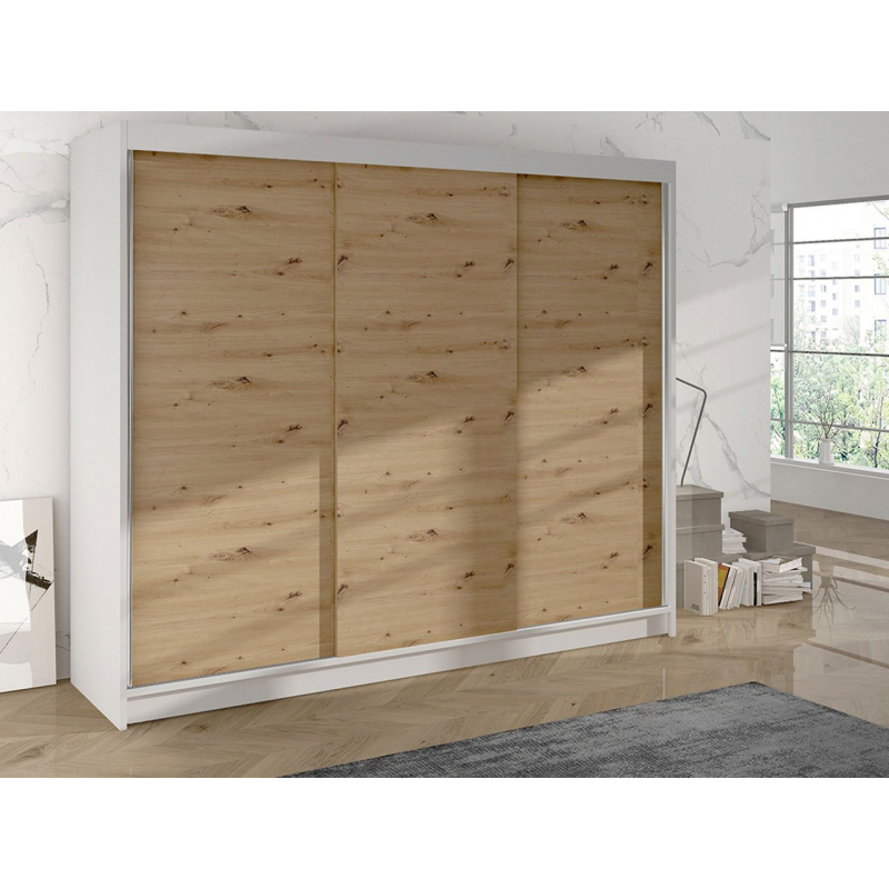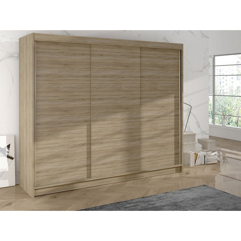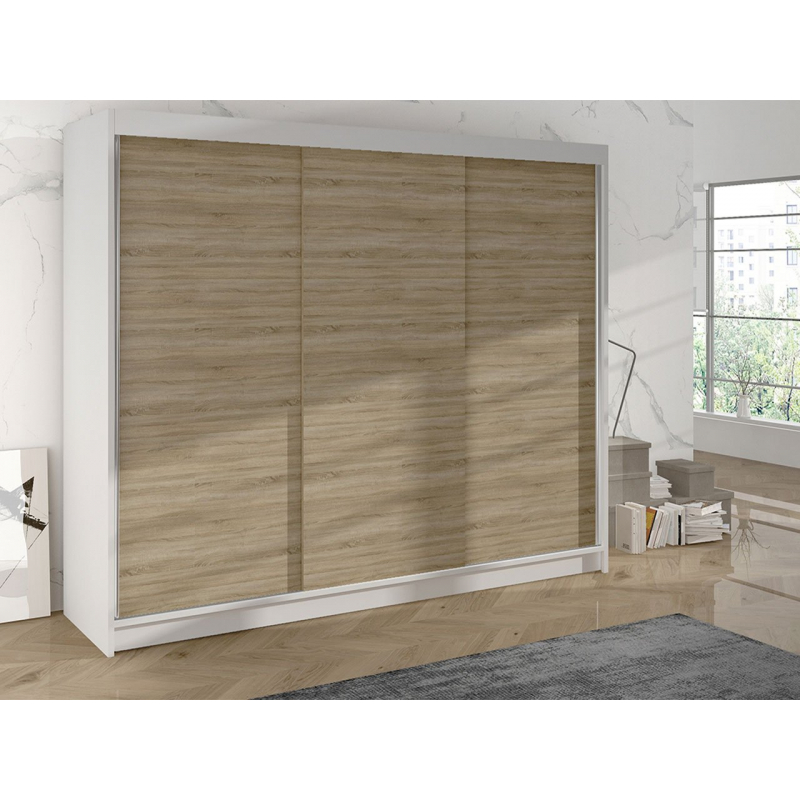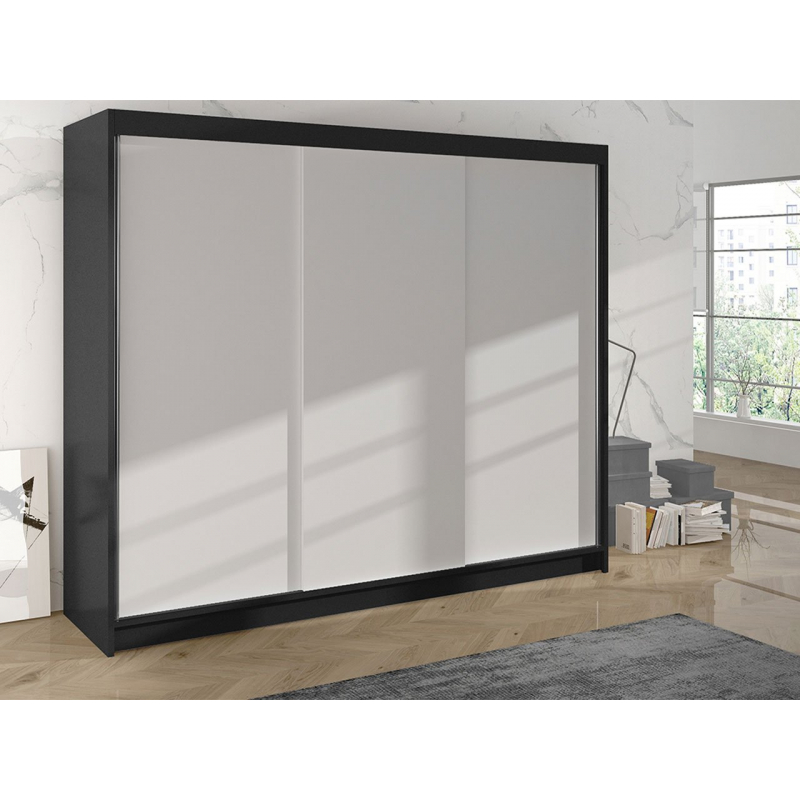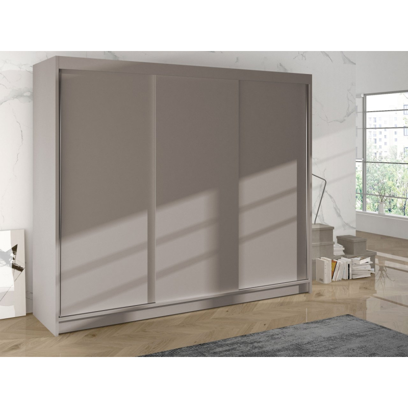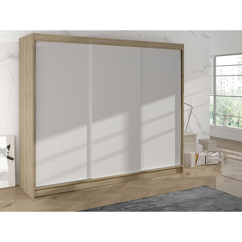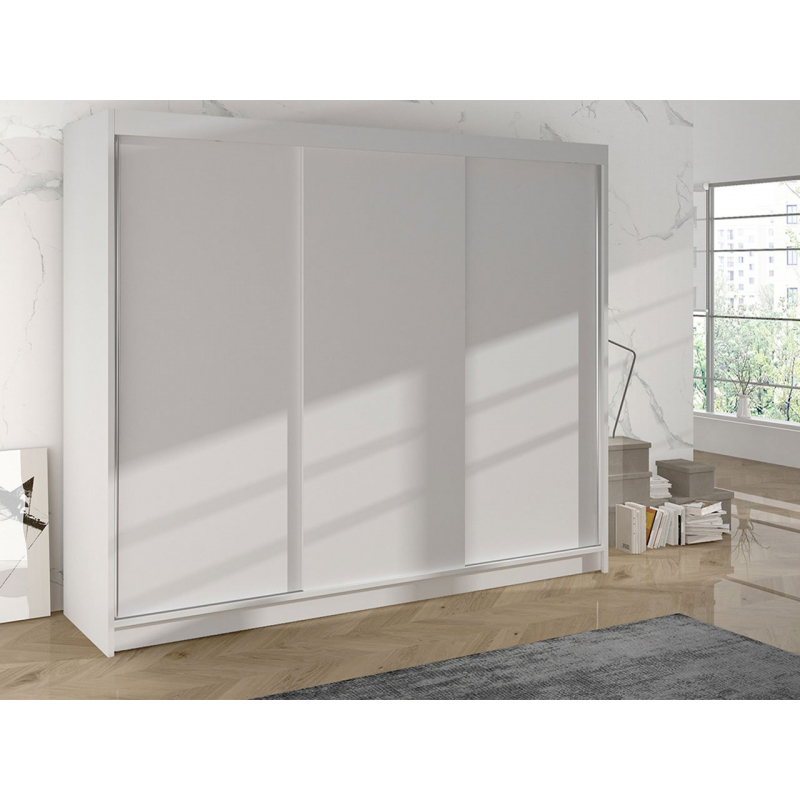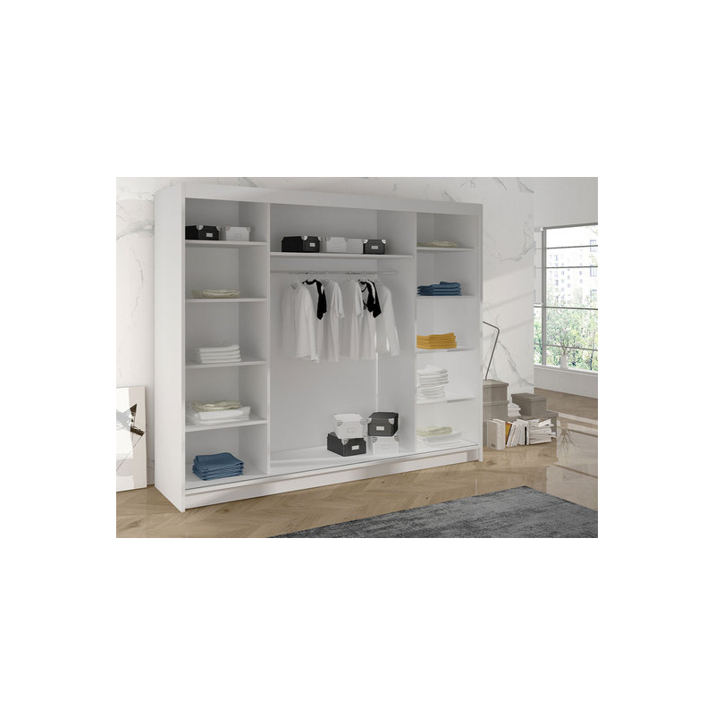 Velká šatní skříň Geneva ve svém uspořádání nabízí dvě řady prostorných polic, které jsou umístěny na vnějších stranách. Ústřední částí šatní skříně je však především tyč na ramínka, která usnadní uskladnění svrchního oblečení nebo oděvů se sklonem k mačkavosti. Systém posuvných dveří se snadno pohybuje po hliníkových vodítkách, což usnadňuje každodenní použití. Posuvná skříň je dostupná v módních barevných variantách.