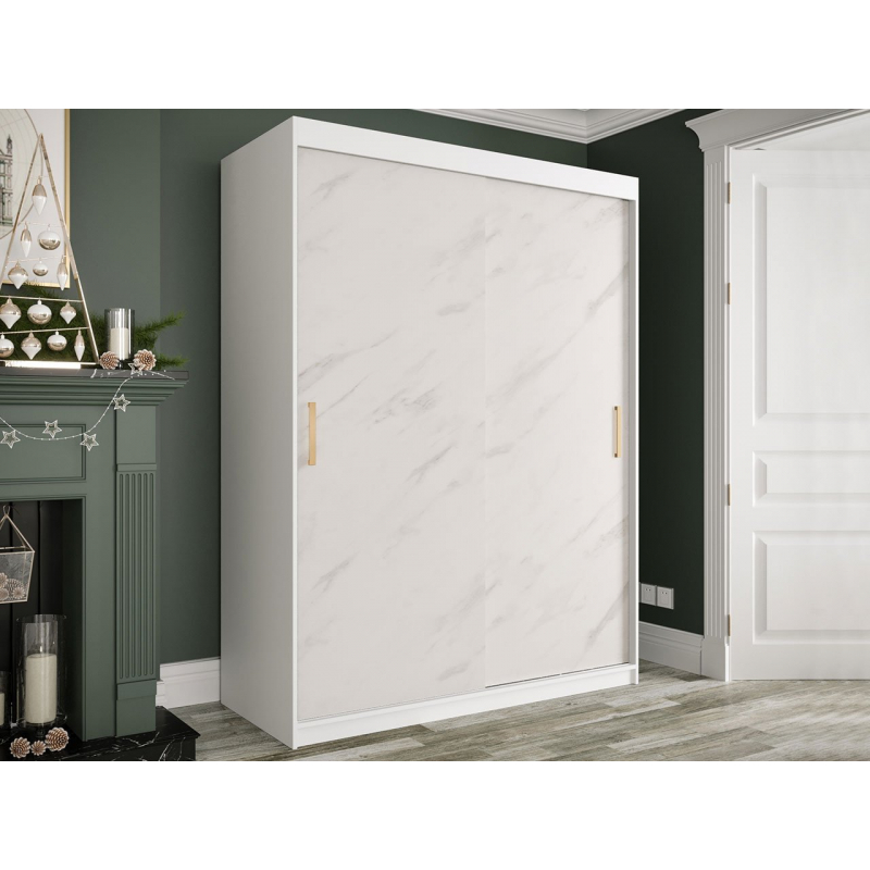 Moderní posuvná skříň Nonnus 150T, která se skvěle hodí jako šatní skříň, úložný prostor pro náhradní ložní prádlo, teplé deky, ale i oblečení pro všechny členy rodiny. V její prostorném interiéru můžete uložit také krabice s botami a letním oblečením. Všestrannost tohoto módního šatníku se hodí do důmyslně promyšleného interiéru. Kombinaci řady polic s předělenou věšákovou plochou doplňuje pár zásuvek. Takové vybavení usnadňuje uskladnění každého kousku oblečení. Výhodou nábytku je také jeho módní vzhled. Mramorový vzor zdobí dveře skříně a zároveň zdůrazňuje lehkou eleganci celého interiéru. Vzhled posuvných dveří zvýrazňuje dvojice podélných úchytek. Pomocí námi připravené palety barev si můžete zvolit barevnou variaci šatníku, která se nejlépe hodí do vašeho interiéru.