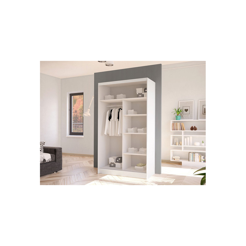 Masero V je malá šatní skříň s posuvnými dveřmi. Jeho rozměry jsou 100 cm na šířku, 200 cm na výšku a 58 cm do hloubky, takže se skvěle hodí do menší ložnice nebo do předsíně.