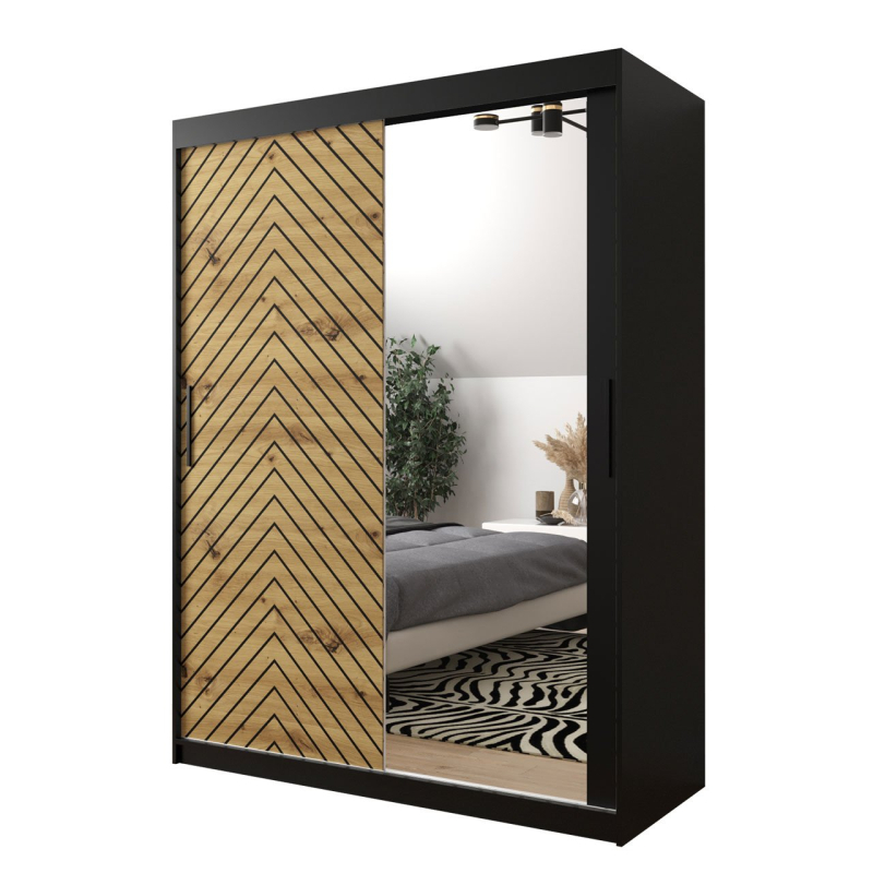 Posuvná šatní skříň Ratintu 2 150 cm se zrcadlem má kompaktní rozměry, které umožňují její umístění v jakémkoli typu místnosti. Organizuje prostor v obývacím pokoji, ložnici, dětském pokoji a dokonce i v předsíni.