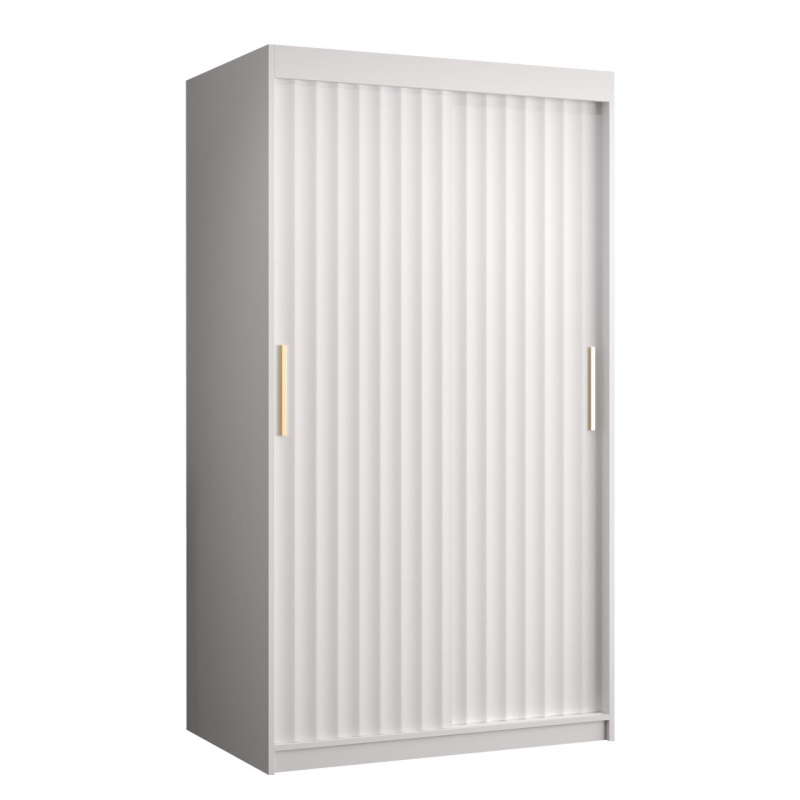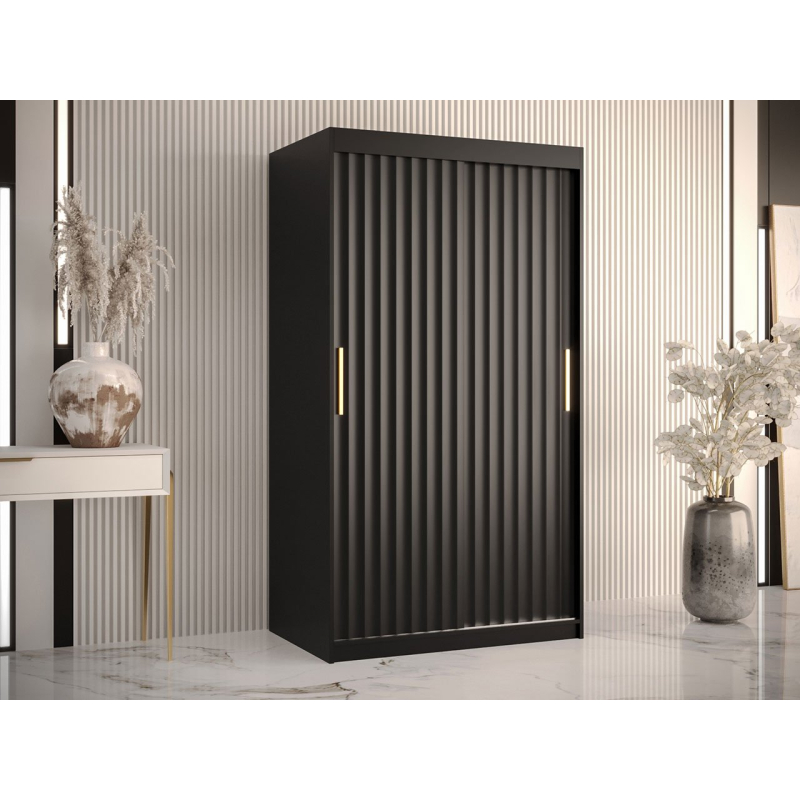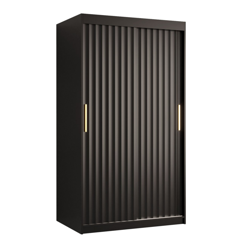 Moderní skříň s posuvnými dveřmi Towiro Wave 1 100 cm je příkladem stylového vybavení domácnosti. Hloubku barev, které ji zdobí, doplňují jednoduché úchyty ve zlaté barvě. V takovém prostředí vypadá šatník stylově a elegantně. Charakteristickým detailem front je vlnitá struktura. Taková povrchová úprava zatraktivní vzhled skříně a navíc osvěží výzdobu místnosti.