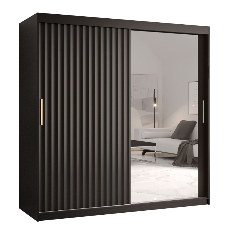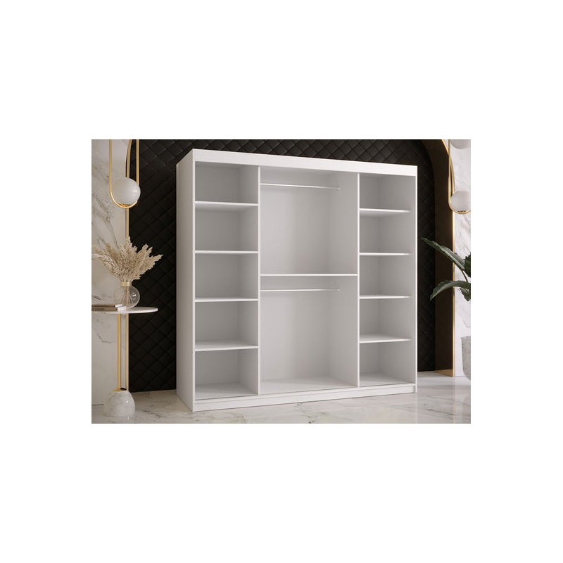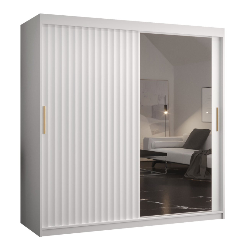 Rodinná posuvná skříň Towiro Wave 2 se zrcadlem je široká 180 cm. Má dostatek prostoru pro uložení oblečení, doplňků a příslušenství pro vylepšení vašeho stylu. Uprostřed jsou závěsné lišty.