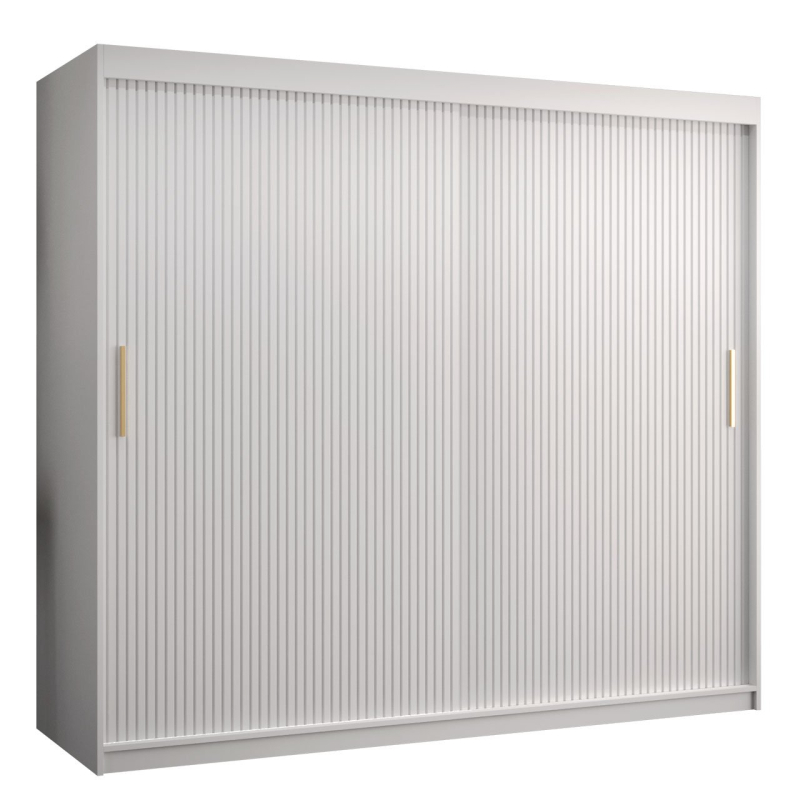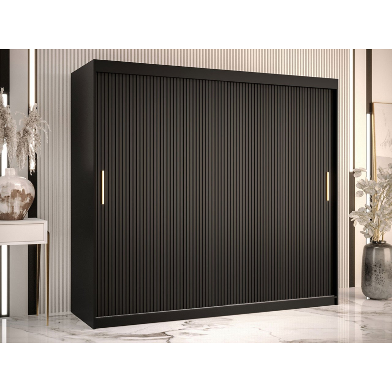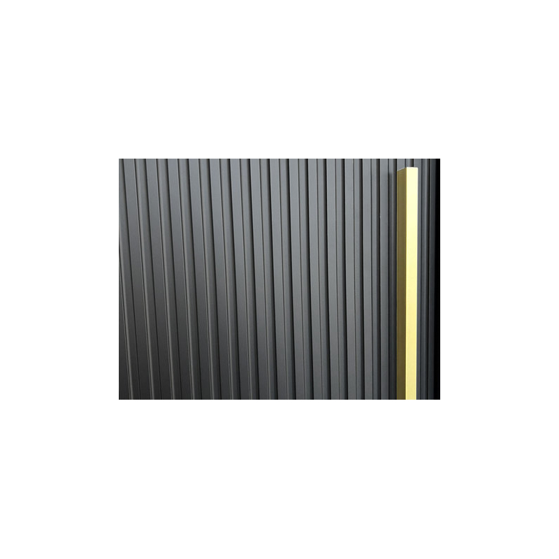 Šatní skříň s posuvnými dveřmi Towiro Slim 1 200 vás nadchne svým jedinečným stylem a mimořádnou funkčností. Je to nejen kus nábytku pro ukládání oblečení, ale také jedinečná dekorace. Lamelová šatní skříň upoutá pozornost svým stylem. Dodá ložnici eleganci a styl. Na pozadí klasické černé nebo bílé barvy vynikají zlaté úchytky, které dokonale vytvářejí ucelenou kompozici.