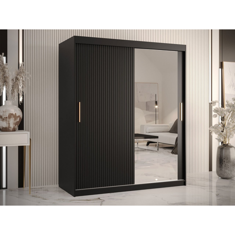 Její velký vnitřní prostor poskytne pohodlné zázemí pro oblečení a další doplňky až dvěma osobám. Posuvné dveře jsou skvělým komfortem a receptem na méně místa. Na jednom z křídel je navíc umístěno zrcadlo. To vám umožní doladit poslední detaily vašeho outfitu, než vyrazíte ven. Potěšte se naším návrhem - stylovou šatní skříní a proměňte s ní své okolí.