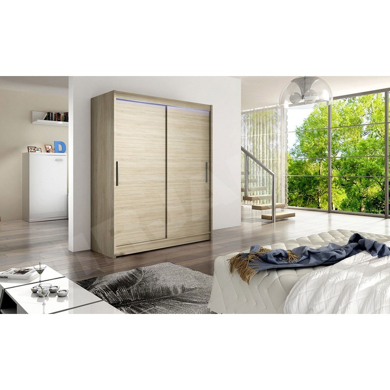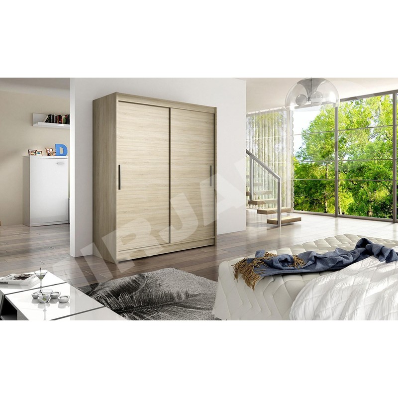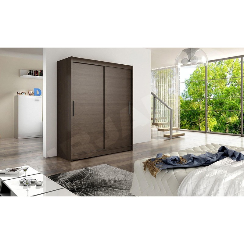 Šatní skříň Presto I zapadne do obývacího pokoje nebo ložnice. Přední fronty mají ozdobné zrcadla, které vizuálně zvětší místnost. Šatník je vybaven hliníkovým systémem posuvných dveří. Všechny části oblečení mohou být zavěšeny na namontovanou tyč na ramínka a uložené na prostorné police. Do skříně do ložnice se dají umístit i větší předměty, jako jsou kufry nebo sezónní obuv. Nábytek byl vyroben z laminované desky.