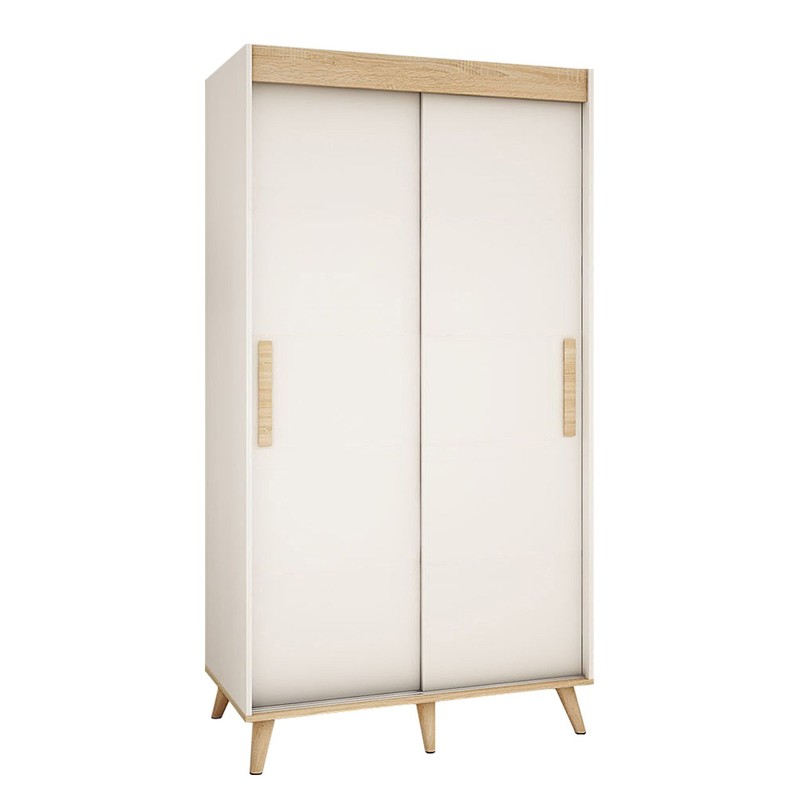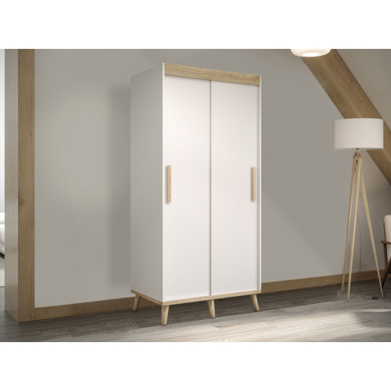 Bravo T 100 cm je funkční skříň s charakteristickou strukturou. Vyznačuje se vysokou kvalitou a skandinávským stylem. Má specifické, vysoké dřevěné nohy a úchyty specifické pro tento styl.
