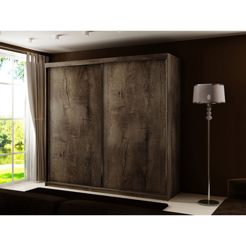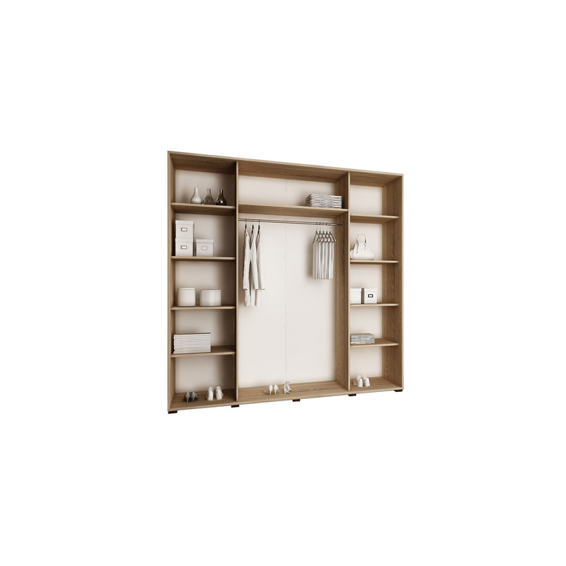Posuvná skříň Sahara 200 IV je vše, co potřebujete uzavřené v kompaktní podobě. Velká šatní skříň chytře spojuje dekorativní funkce s praktickým úložným prostorem. V centrální části šatníku s posuvnými dveřmi naleznete tyč na zavěšení oblečení na ramínka. Na druhé straně odkládací zóny umístěné po stranách vyplňují četné police, na které můžete úspěšně uložit celou vaši kolekci oblečení. Tento kus nábytku, který je dostupný v nejmódnější barevné paletě, se perfektně hodí ke každému stylu interiérového designu.
