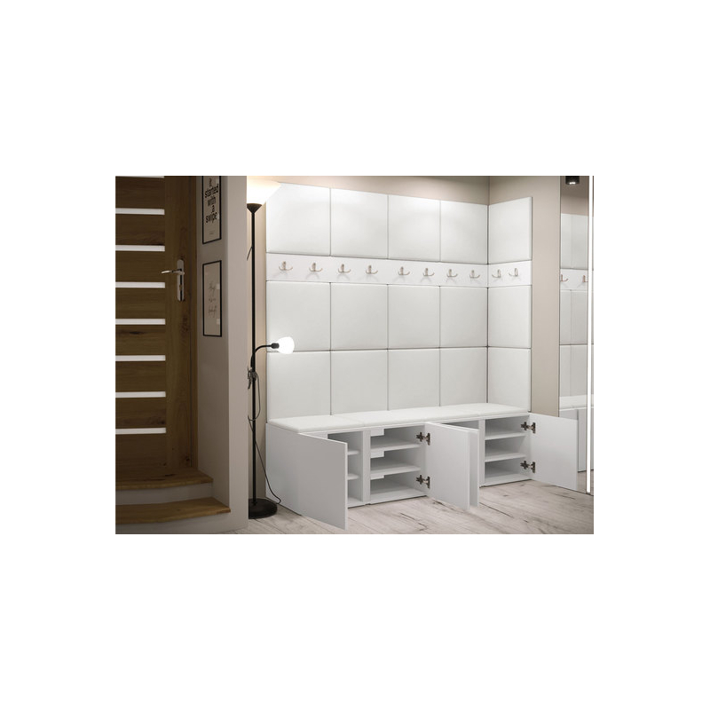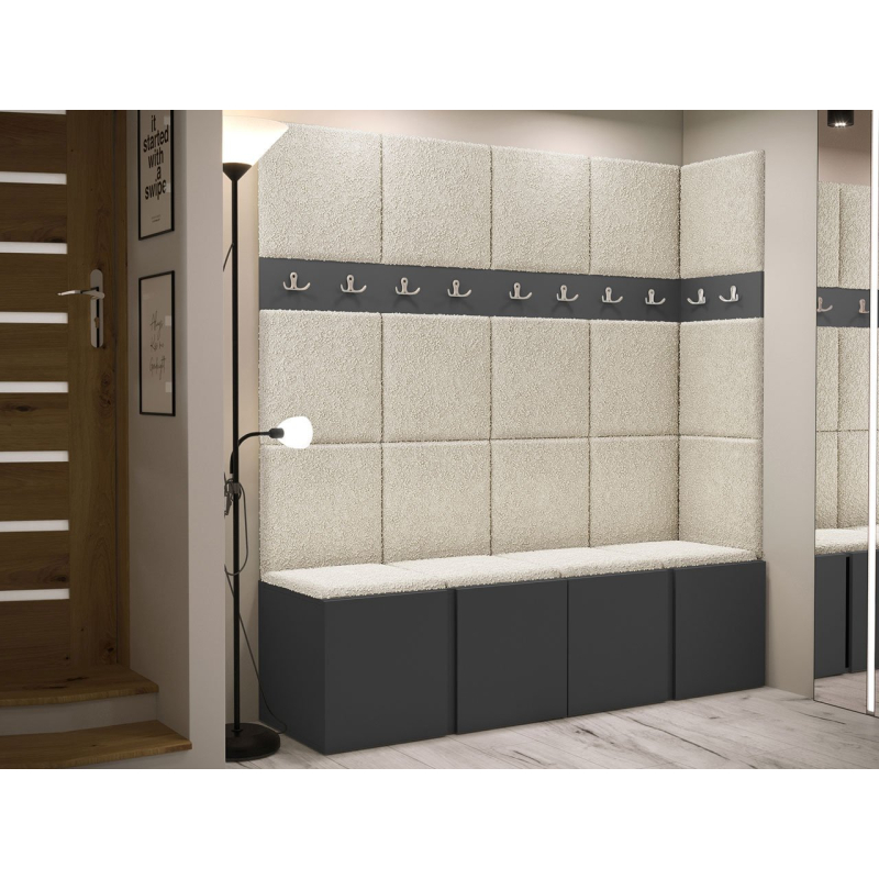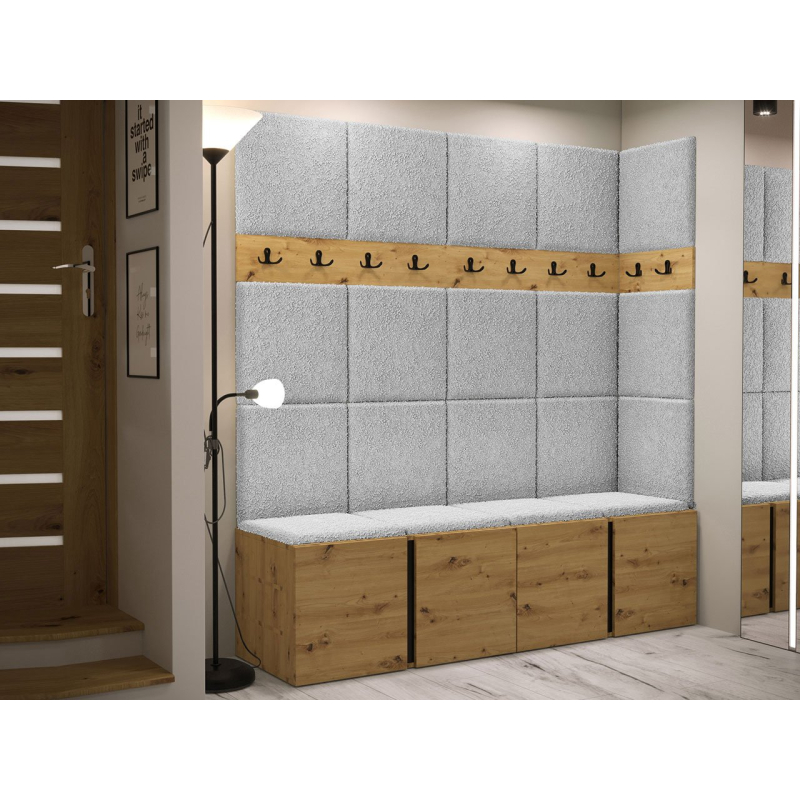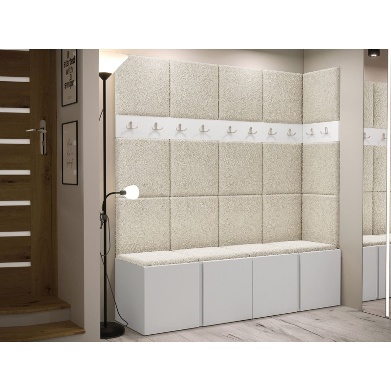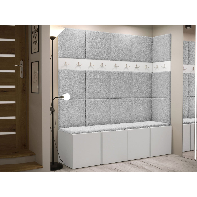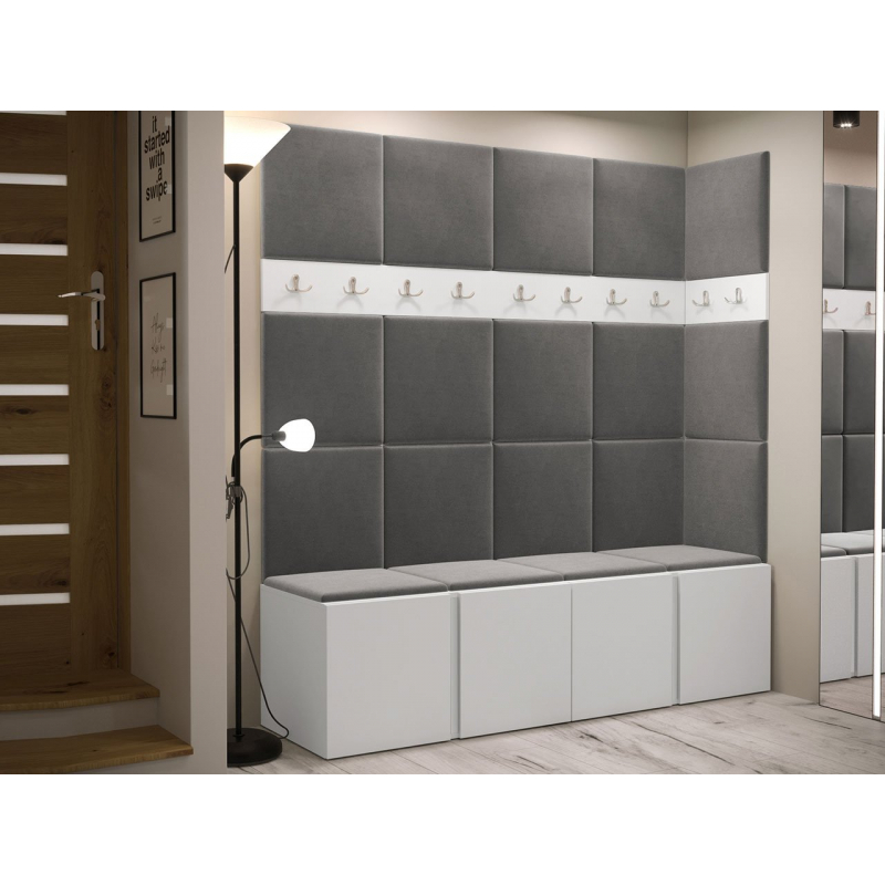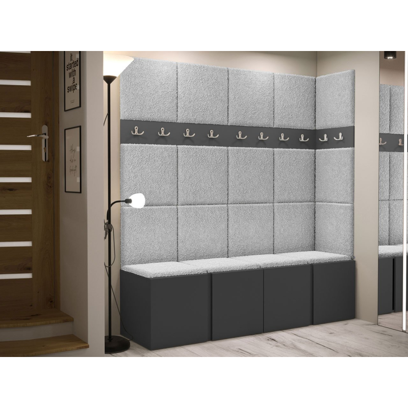 Šatní skříň do předsíně je prvek, který by měl být přítomen v každém domě. Oblečení si díky šatníku Tavasz II najde své místo na stylových věšácích a boty budou odpočívat ve skříňce. Různorodost barev a jednoduchý tvar vám umožní dokonale sladit nábytek s designem vašeho interiéru. Pohodlné sedátko a opěradlo z čalouněných panelů usnadní obouvání. Čalouněná šatní skříň je hitem posledních měsíců! Šatní skříň do předsíně se sedačkou jistě upoutá pozornost hostů.