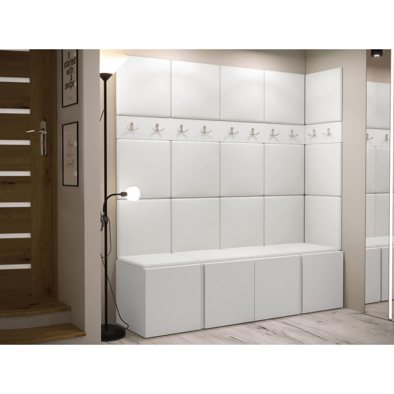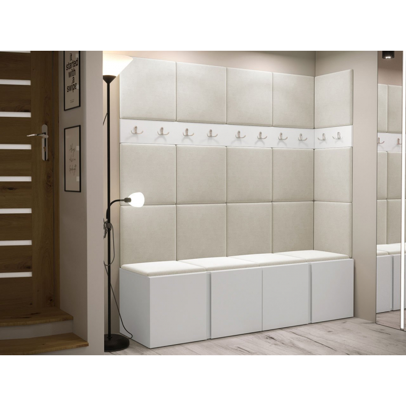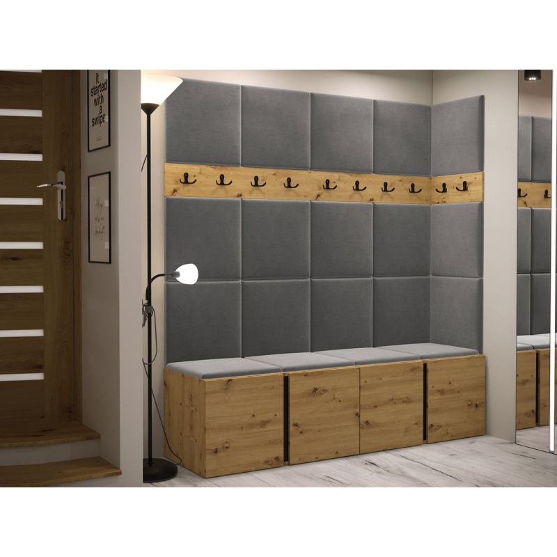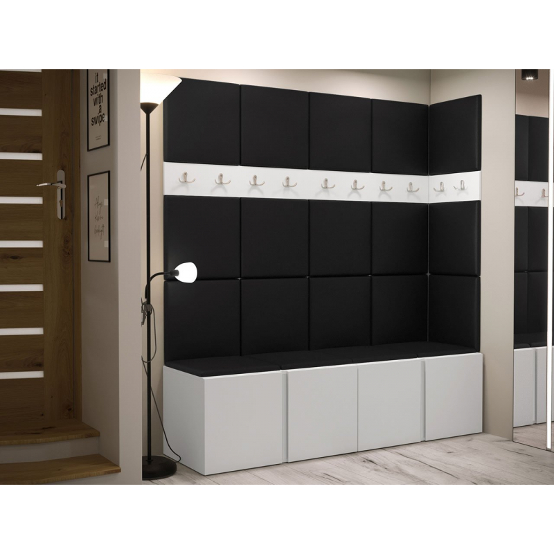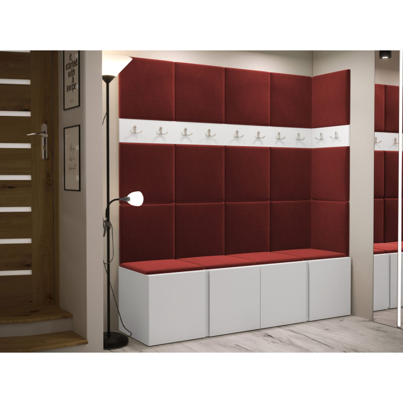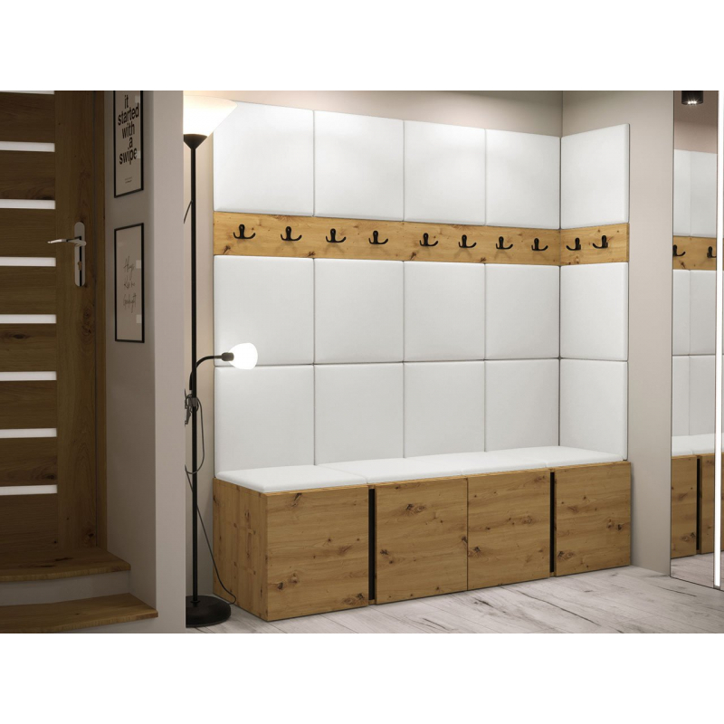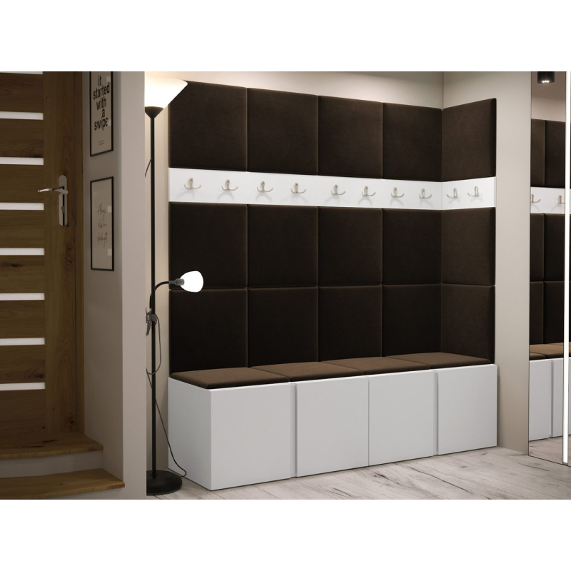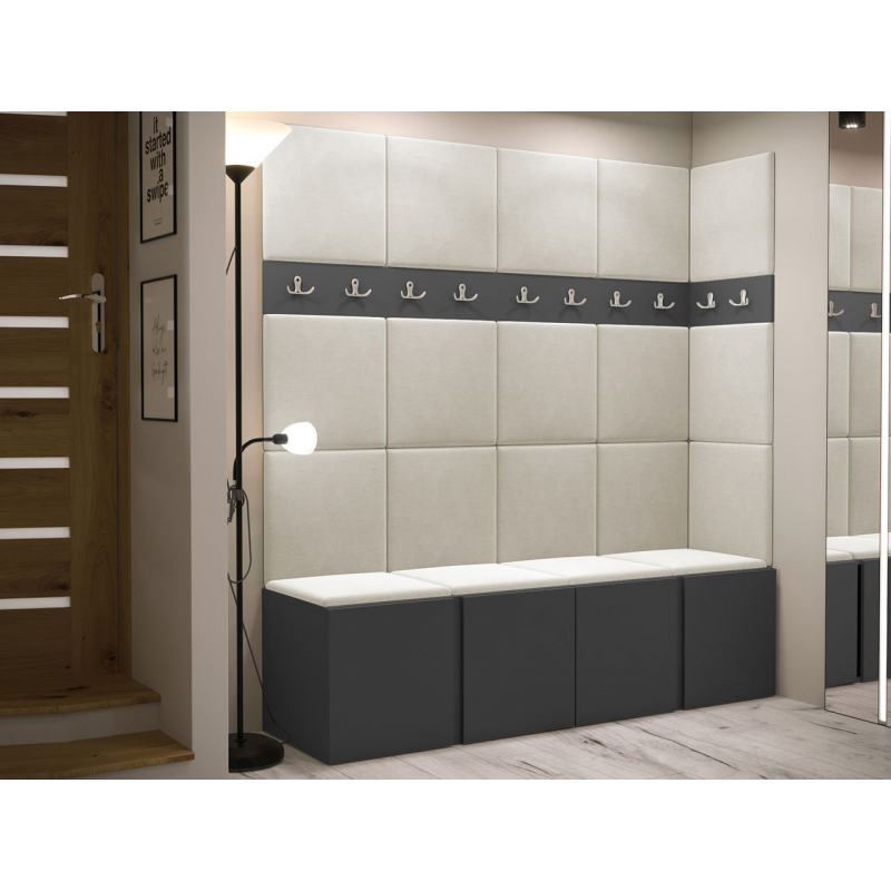 Šatní skříň do předsíně je prvek, který by měl být přítomen v každém domě. Oblečení si díky šatníku Tavasz II najde své místo na stylových věšácích a boty budou odpočívat ve skříňce. Různorodost barev a jednoduchý tvar vám umožní dokonale sladit nábytek s designem vašeho interiéru. Pohodlné sedátko a opěradlo z čalouněných panelů usnadní obouvání. Čalouněná šatní skříň je hitem posledních měsíců! Šatní skříň do předsíně se sedačkou jistě upoutá pozornost hostů.