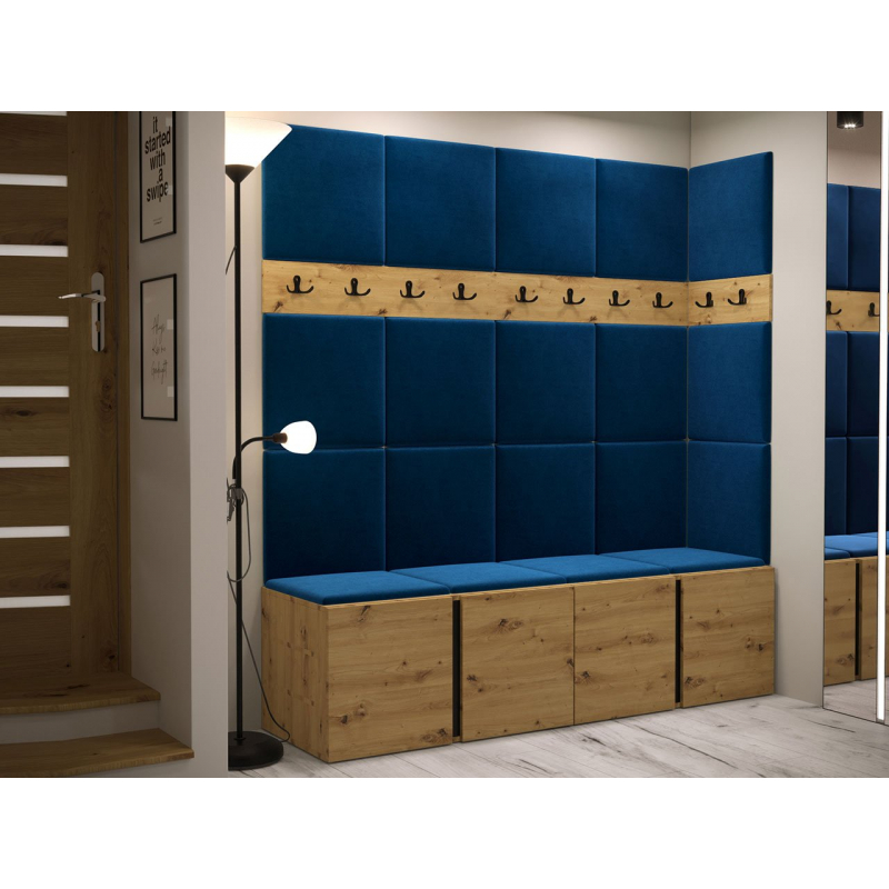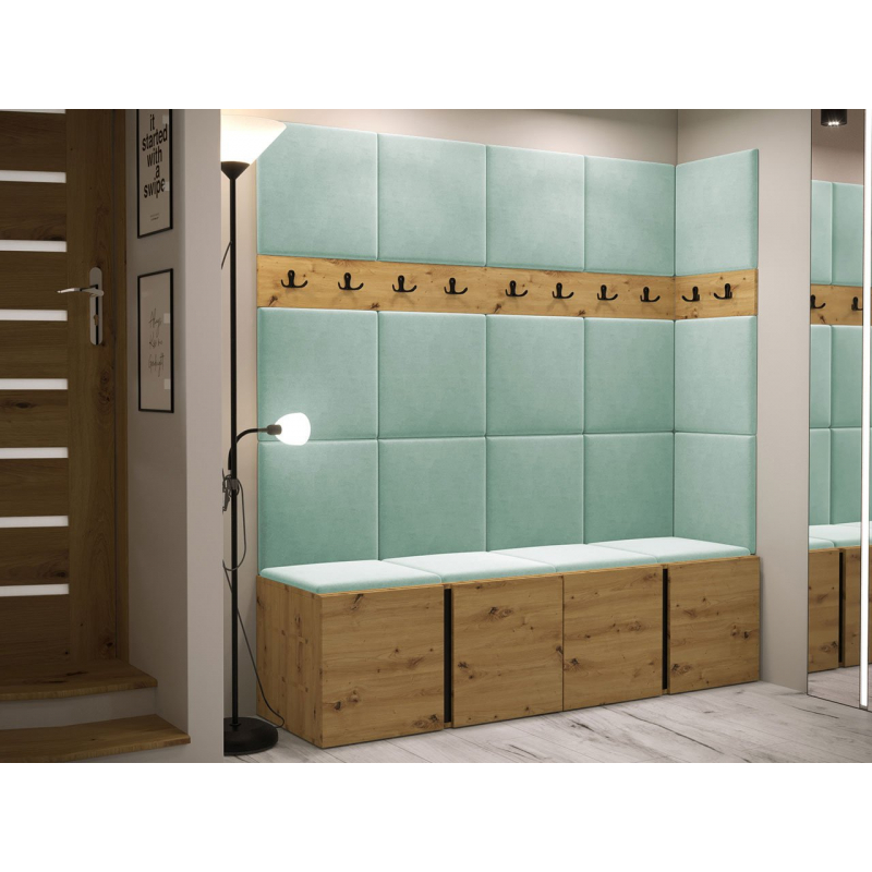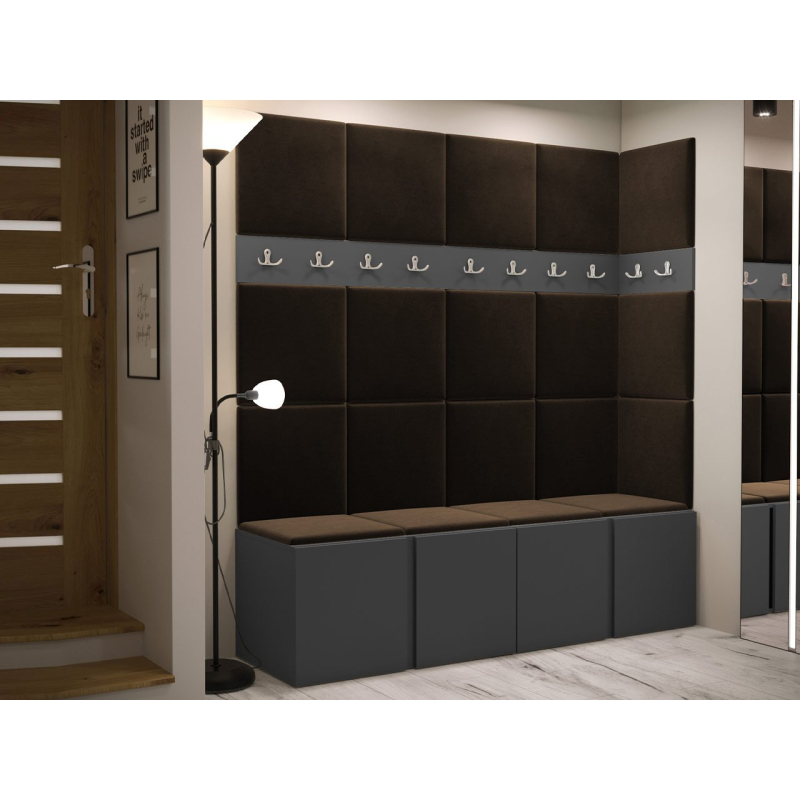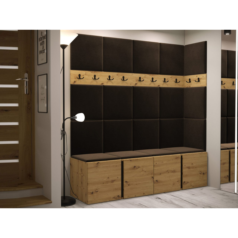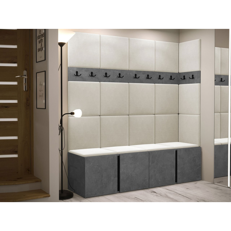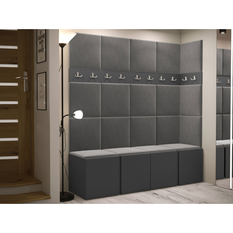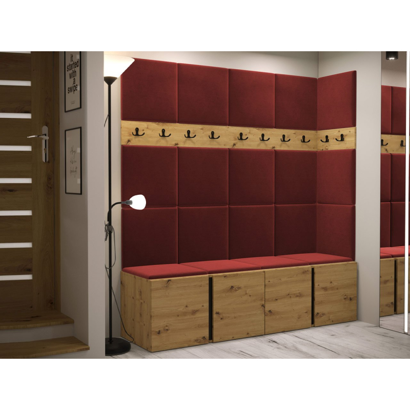 Šatní skříň do předsíně je prvek, který by měl být přítomen v každém domě. Oblečení si díky šatníku Tavasz II najde své místo na stylových věšácích a boty budou odpočívat ve skříňce. Různorodost barev a jednoduchý tvar vám umožní dokonale sladit nábytek s designem vašeho interiéru. Pohodlné sedátko a opěradlo z čalouněných panelů usnadní obouvání. Čalouněná šatní skříň je hitem posledních měsíců! Šatní skříň do předsíně se sedačkou jistě upoutá pozornost hostů.
