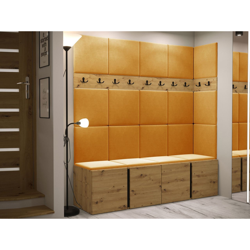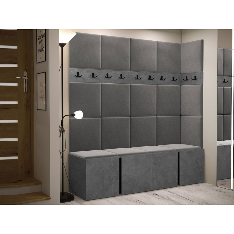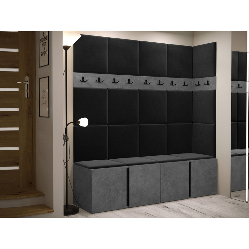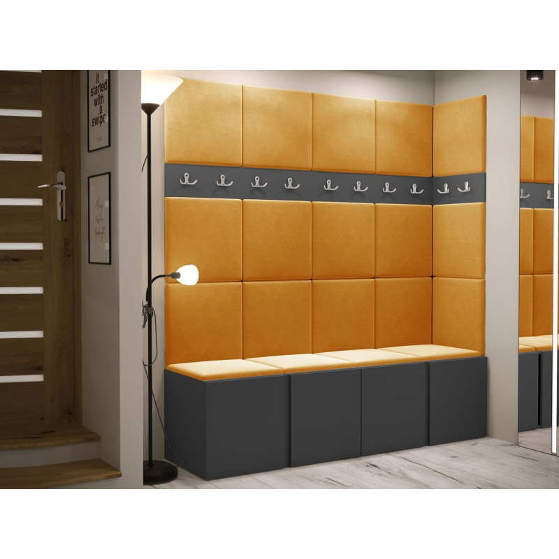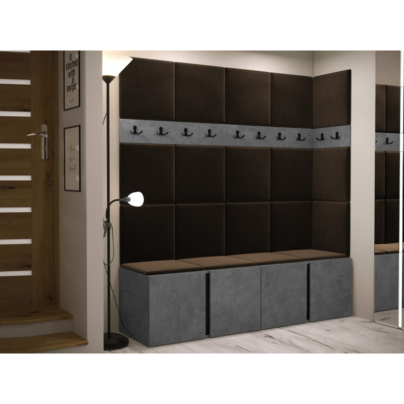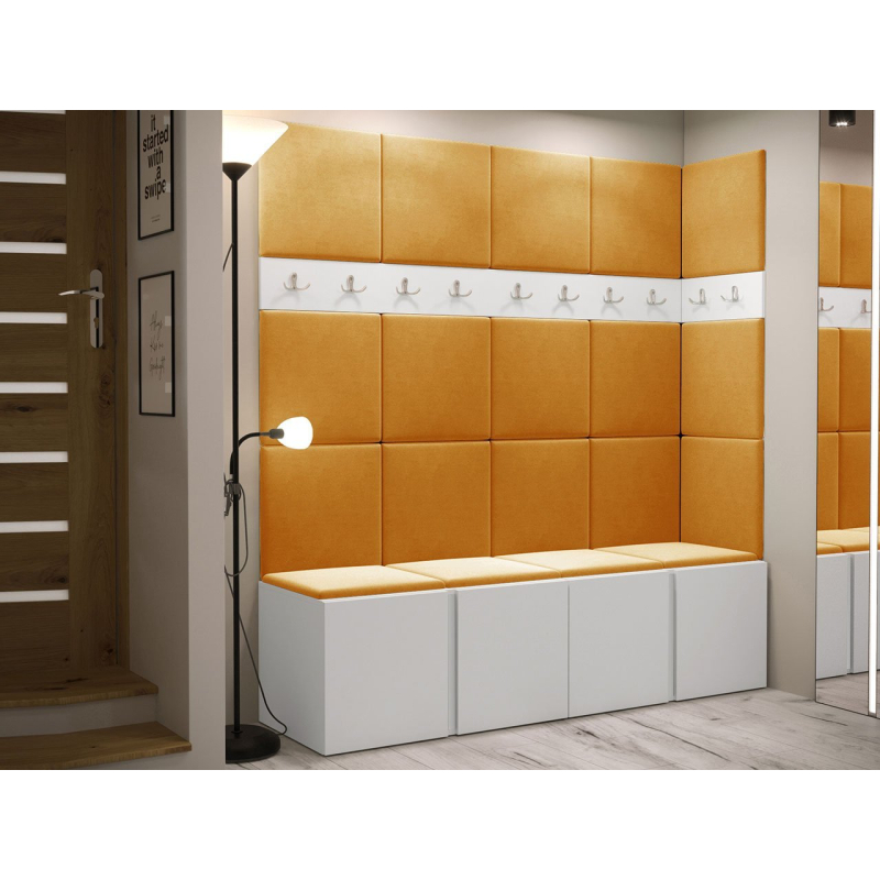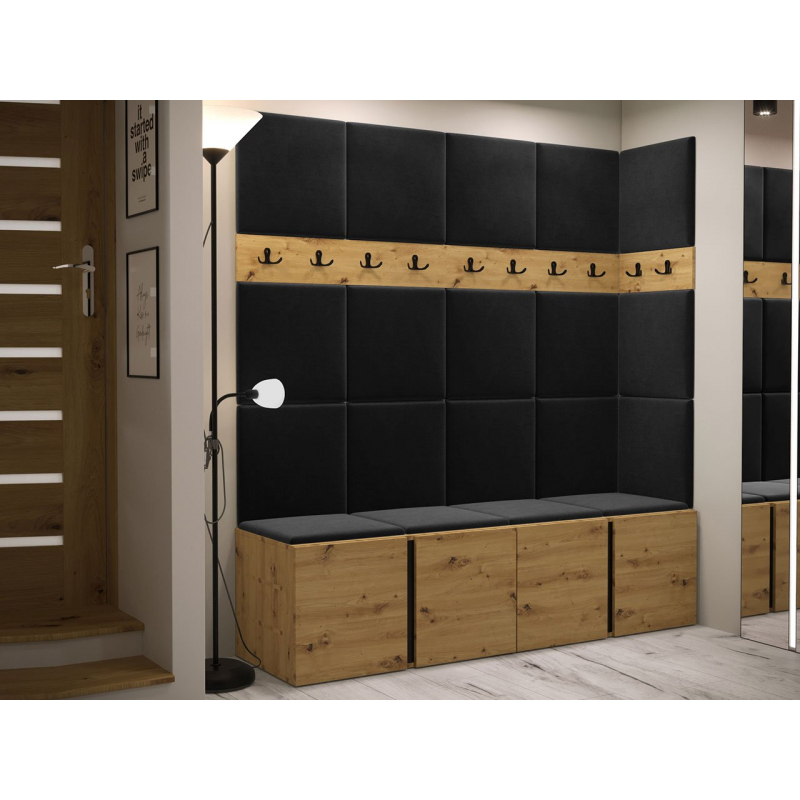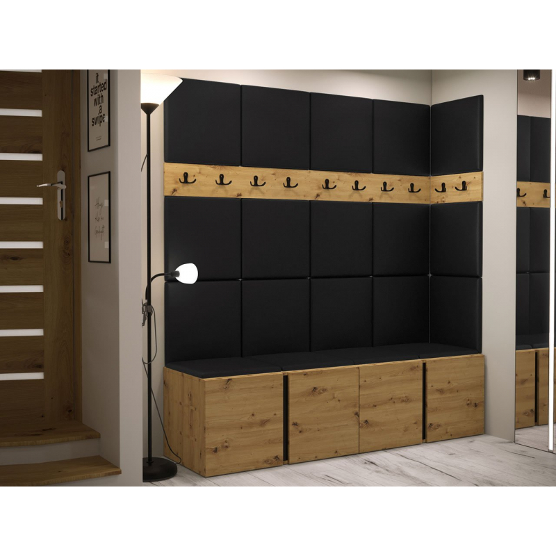 Šatní skříň do předsíně je prvek, který by měl být přítomen v každém domě. Oblečení si díky šatníku Tavasz II najde své místo na stylových věšácích a boty budou odpočívat ve skříňce. Různorodost barev a jednoduchý tvar vám umožní dokonale sladit nábytek s designem vašeho interiéru. Pohodlné sedátko a opěradlo z čalouněných panelů usnadní obouvání. Čalouněná šatní skříň je hitem posledních měsíců! Šatní skříň do předsíně se sedačkou jistě upoutá pozornost hostů.
