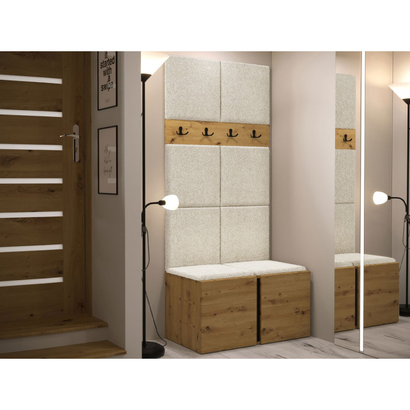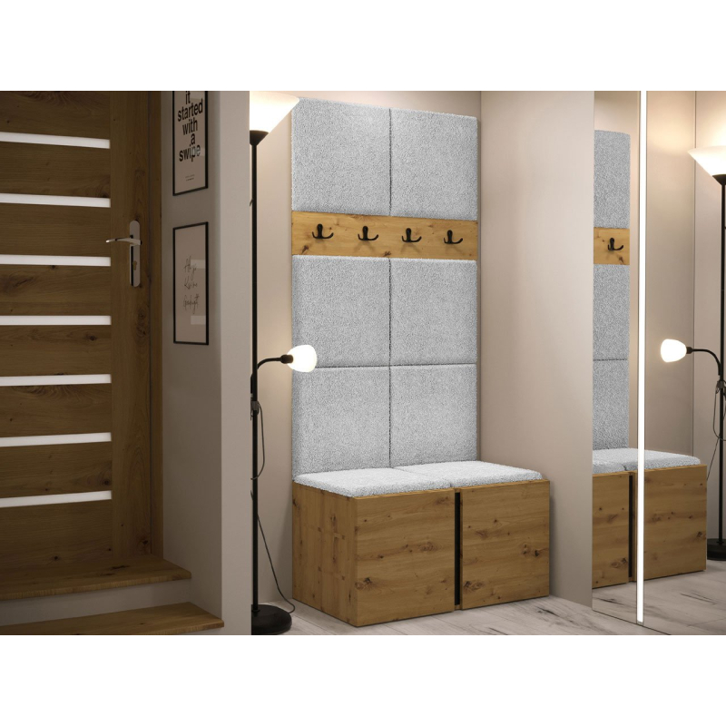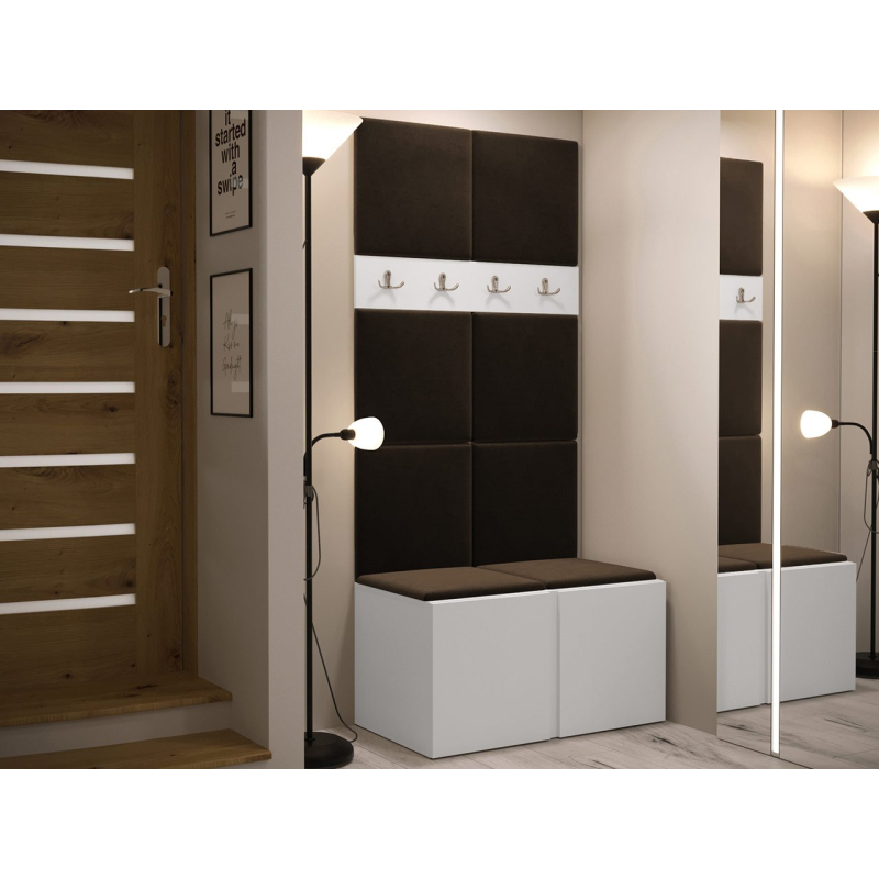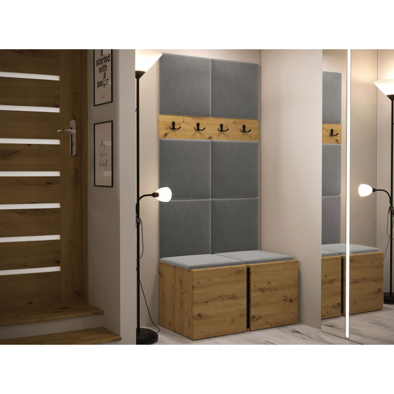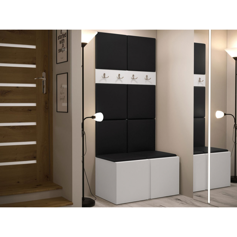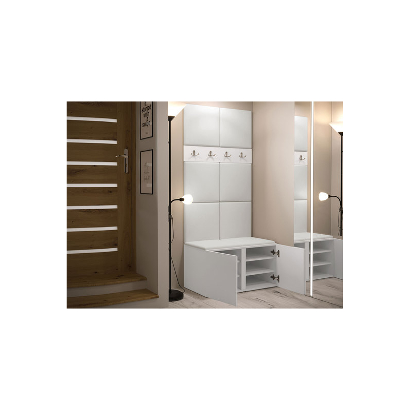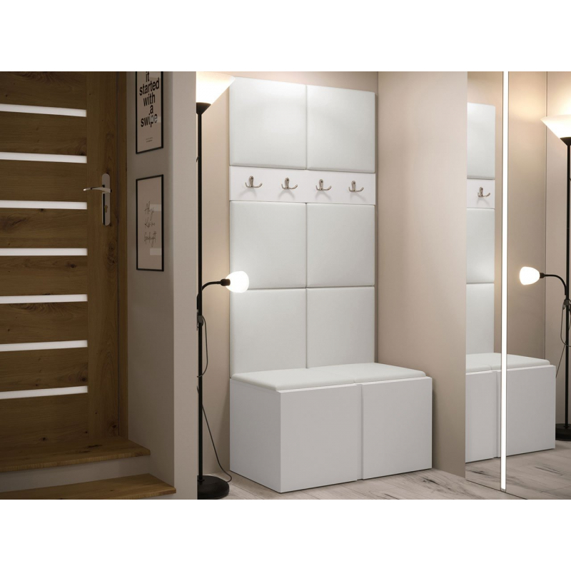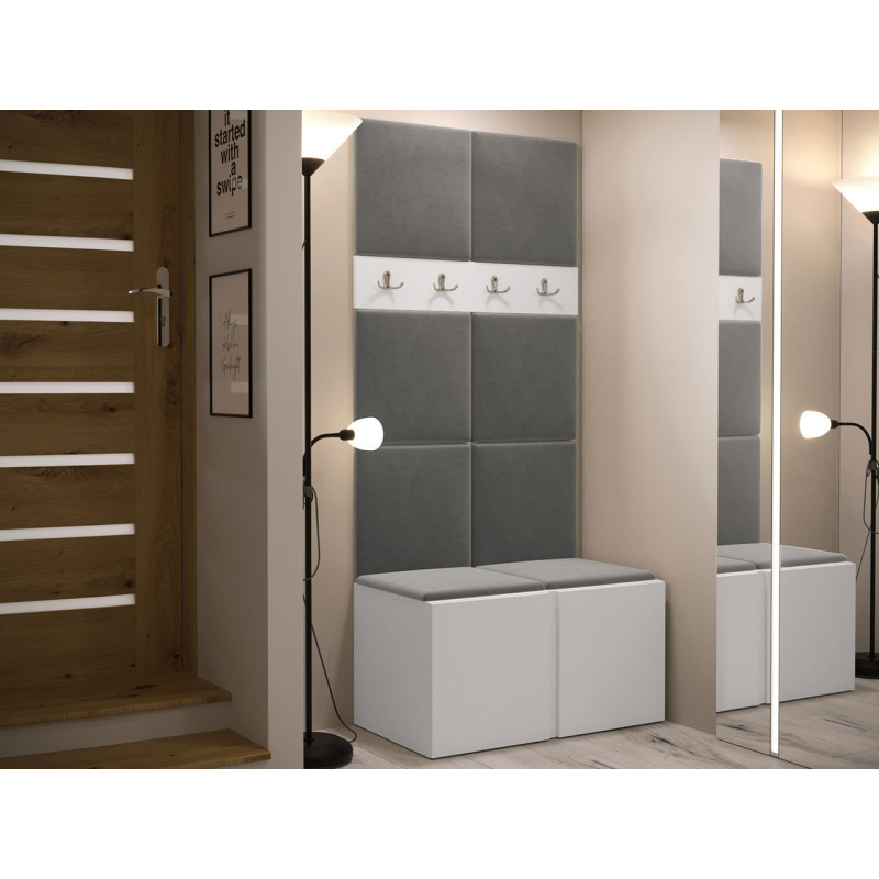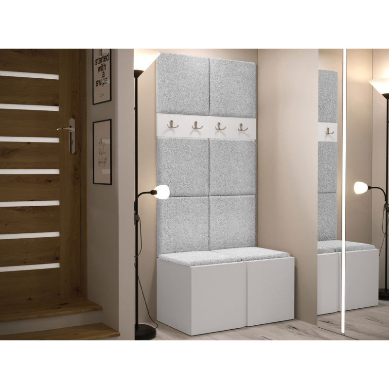 Předsíň Tavasz je kombinací dekorativních prvků a funkčnosti. Nábytek se skládá ze tří odlišných prvků. První je botník s několika policemi a pohodlným sedátkem z čalouněných panelů. Čalouněné panely jsou prvkem, který skříň Tavasz odlišuje, jsou nejen pohodlnou oporou při obouvání, ale také zajímavým dekorativním prvkem nábytku. Panely jsou dostupné v módních barevných variantách, které zdůrazní charakter interiéru. Posledním prvkem sestavy je skříň se čtyřmi dvojitými věšáky.