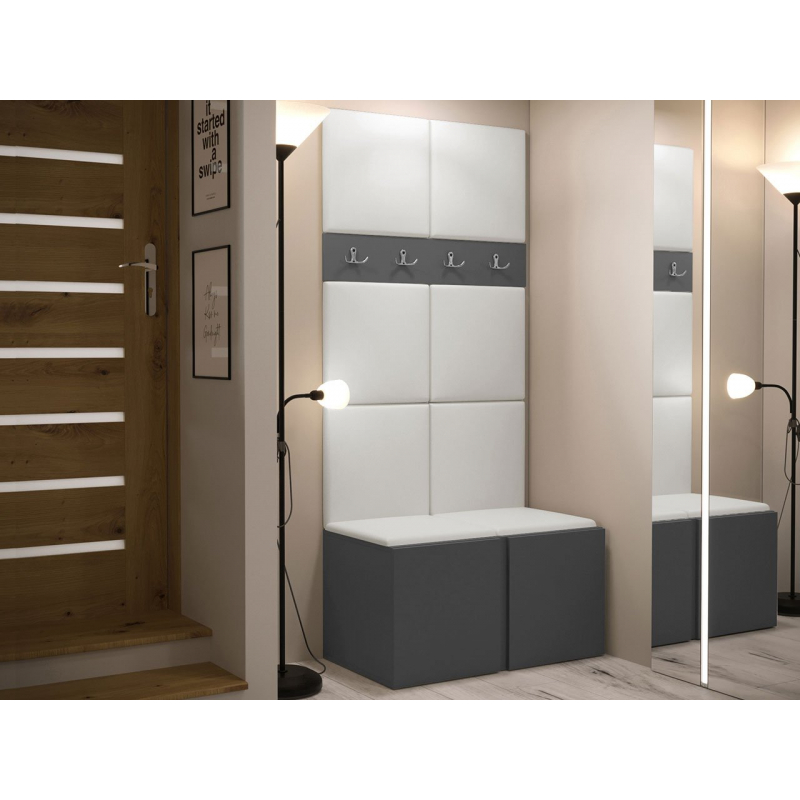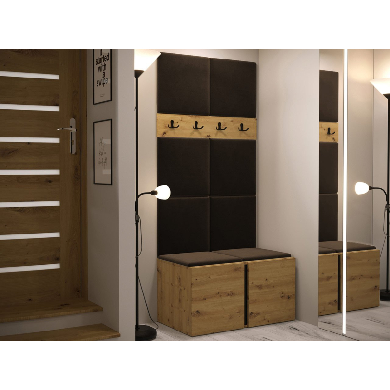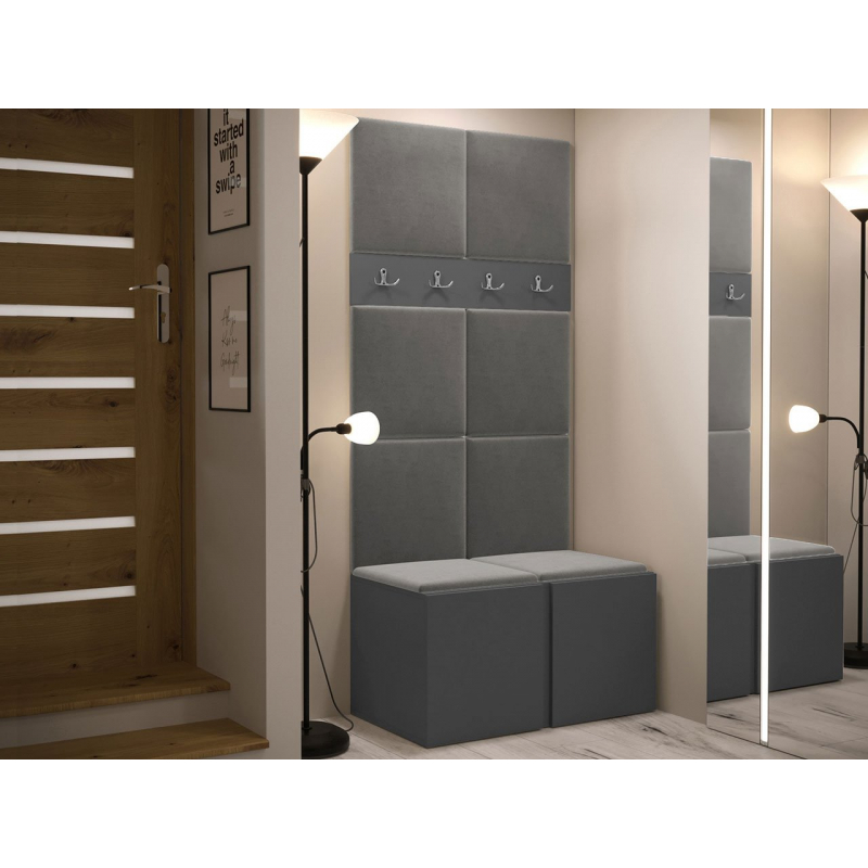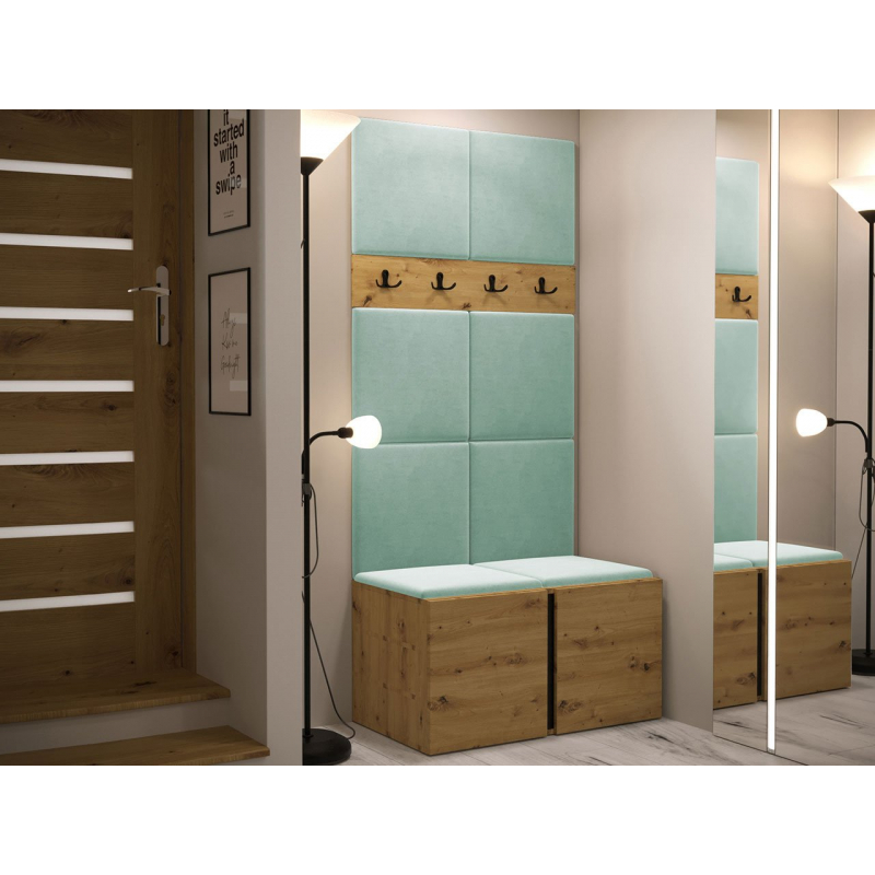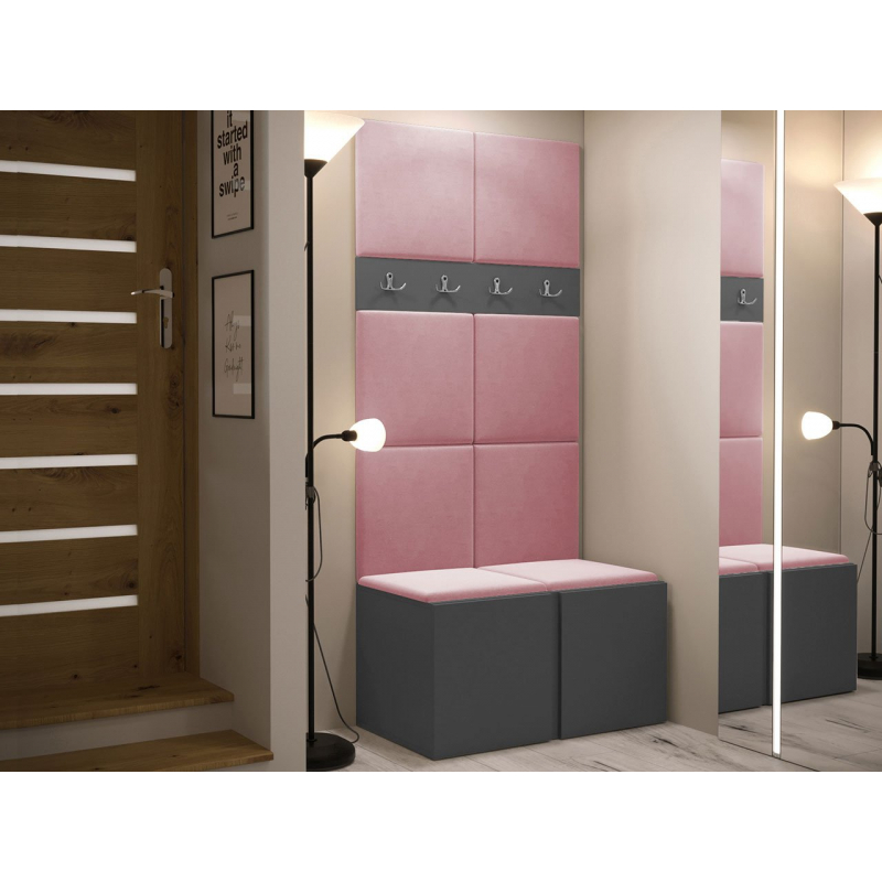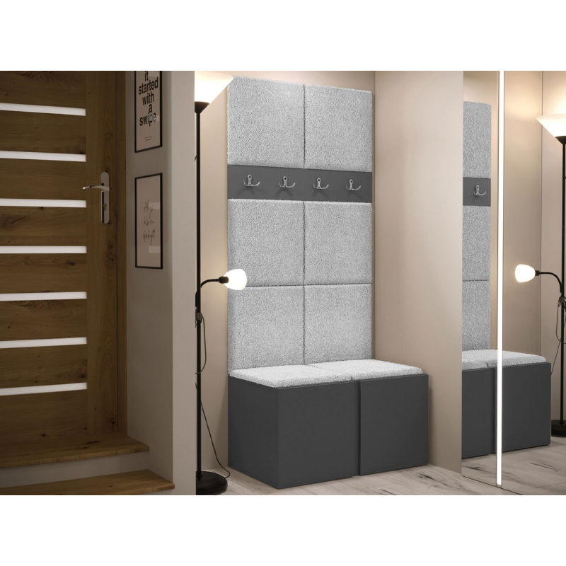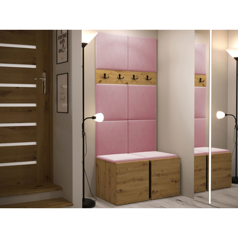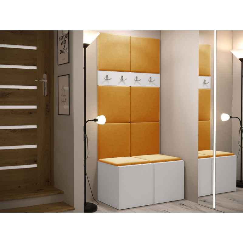 Předsíň Tavasz je kombinací dekorativních prvků a funkčnosti. Nábytek se skládá ze tří odlišných prvků. První je botník s několika policemi a pohodlným sedátkem z čalouněných panelů. Čalouněné panely jsou prvkem, který skříň Tavasz odlišuje, jsou nejen pohodlnou oporou při obouvání, ale také zajímavým dekorativním prvkem nábytku. Panely jsou dostupné v módních barevných variantách, které zdůrazní charakter interiéru. Posledním prvkem sestavy je skříň se čtyřmi dvojitými věšáky.