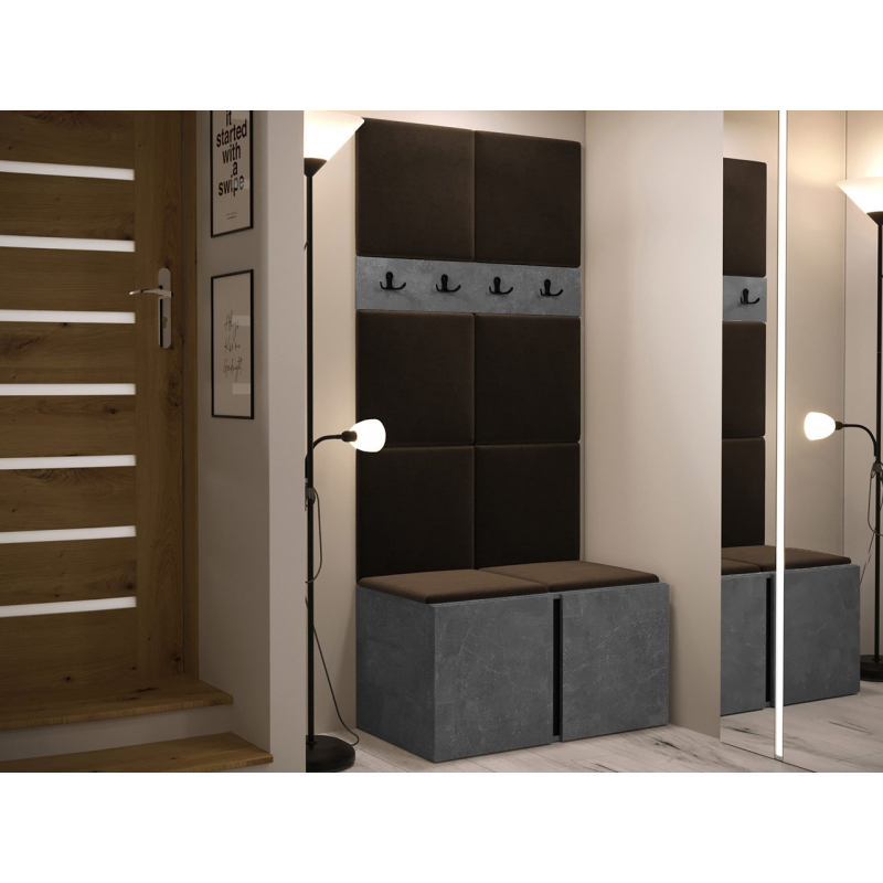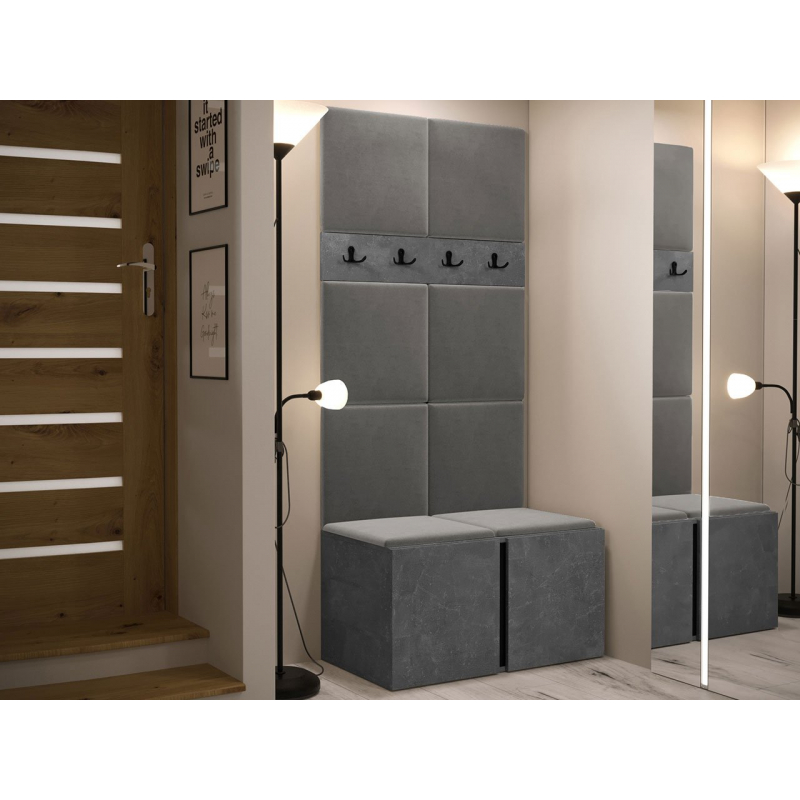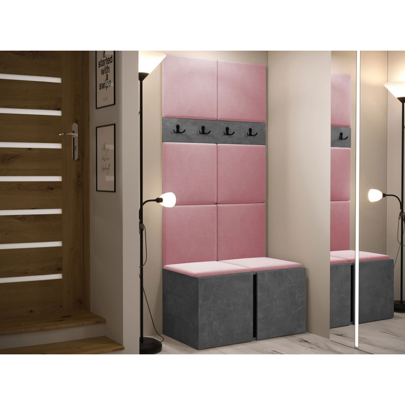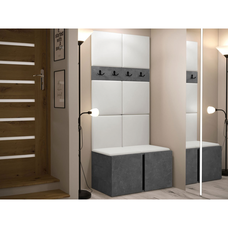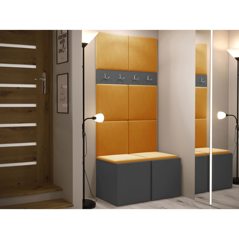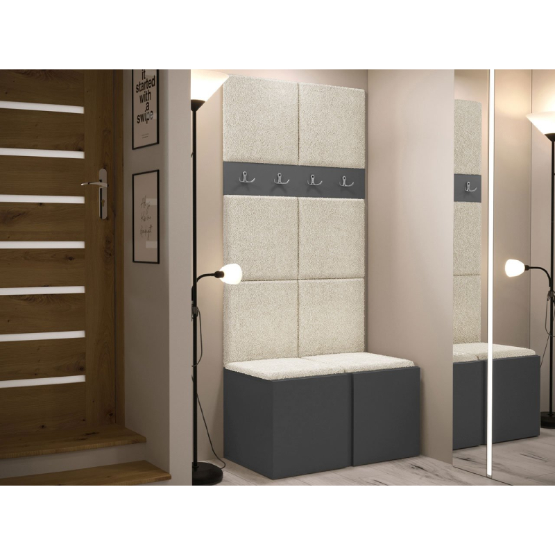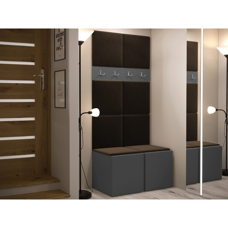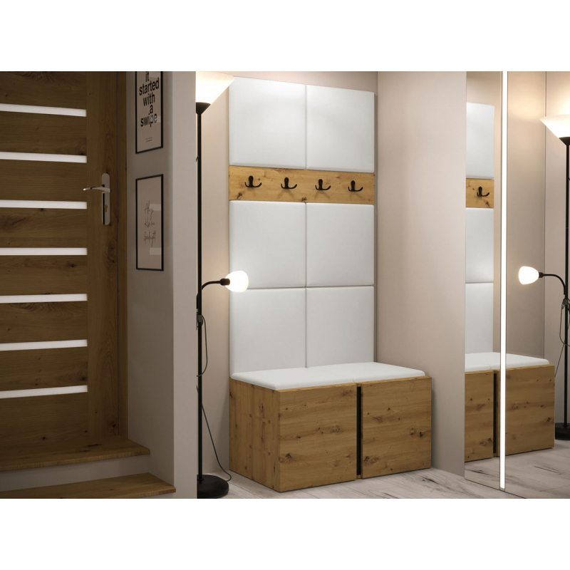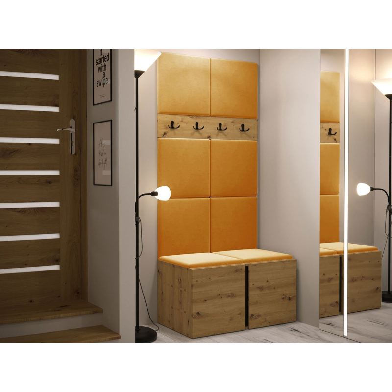 Předsíň Tavasz je kombinací dekorativních prvků a funkčnosti. Nábytek se skládá ze tří odlišných prvků. První je botník s několika policemi a pohodlným sedátkem z čalouněných panelů. Čalouněné panely jsou prvkem, který skříň Tavasz odlišuje, jsou nejen pohodlnou oporou při obouvání, ale také zajímavým dekorativním prvkem nábytku. Panely jsou dostupné v módních barevných variantách, které zdůrazní charakter interiéru. Posledním prvkem sestavy je skříň se čtyřmi dvojitými věšáky.