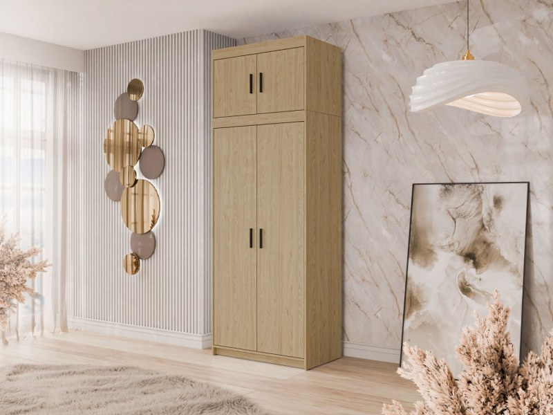 Přidání výsuvné tyče zvyšuje funkčnost nábytku a zvyšuje jeho komfort při používání. Šatní skříň Melen 2D je vysoká 246 cm, takže stěna bude využita od podlahy až ke stropu - vytvoří tak efekt skříně na míru a dodá interiéru ucelenost. Šatní skříň je k dispozici ve třech barvách, které se hodí do každého domácího interiéru.