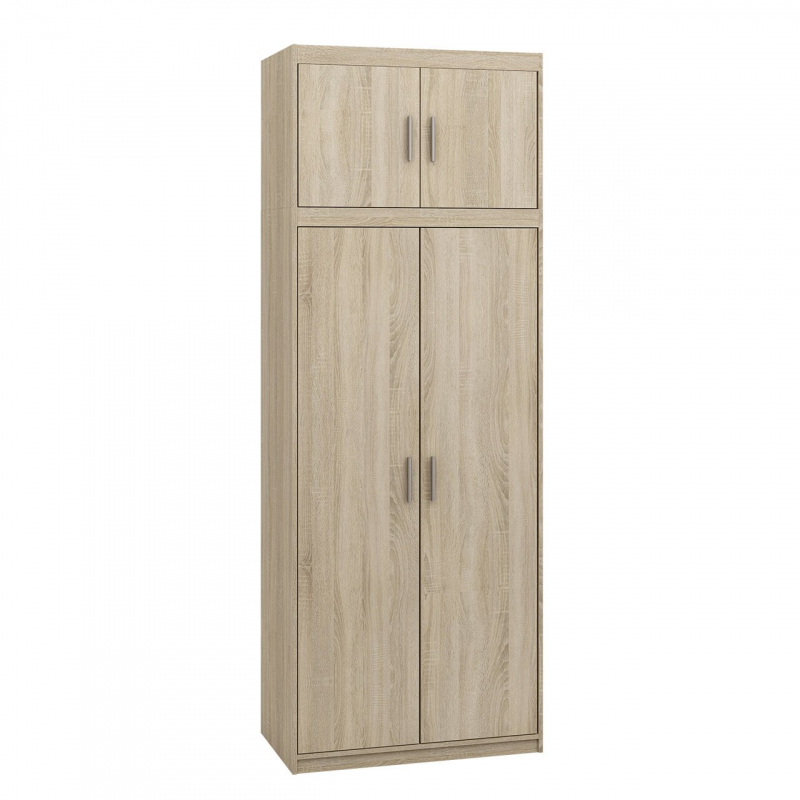 Model Melen 2D je ideální jako šatní skříň do předsíně - kombinace tyče na zavěšení oděvů a několika hlubokých polic umožňuje uložit sezónní svrchní oblečení a boty, a tím zklidnit prostor v místnosti.
